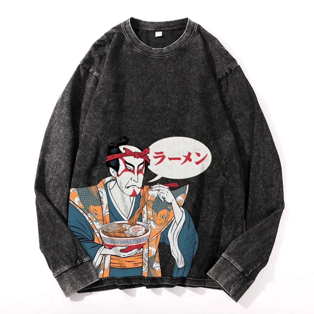 Japanese Ramen Deep Washed Vintage Long Sleeves T-Shirt