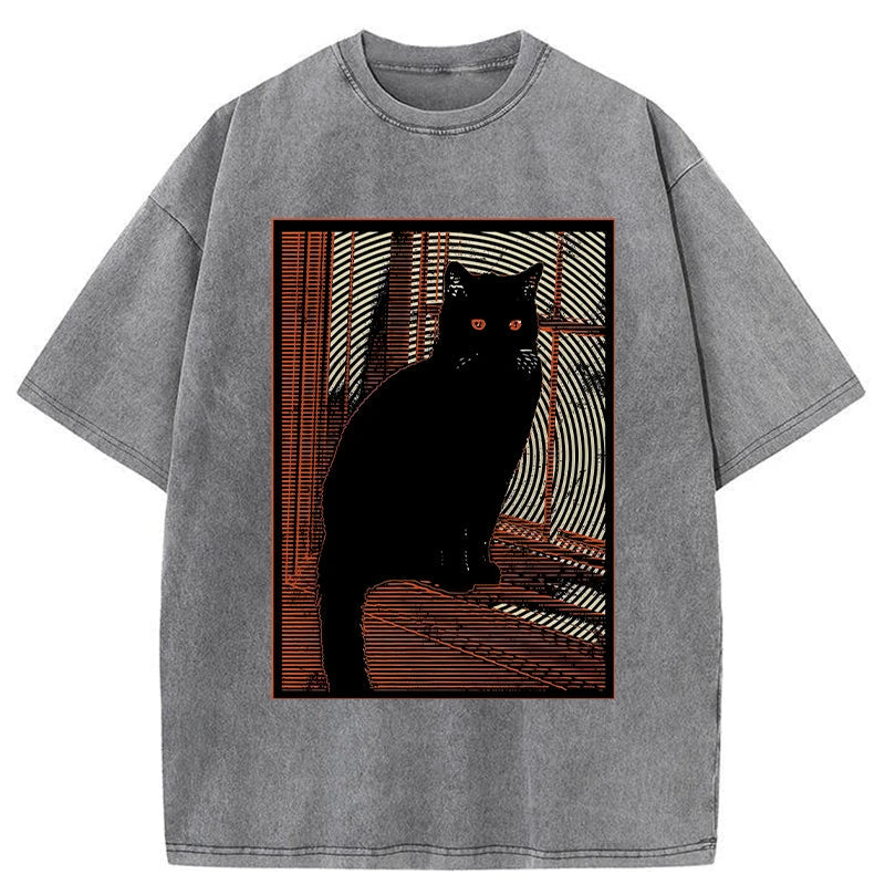Japanese Armor Cat Deep Washed Vintage Long Sleeves T-Shirt