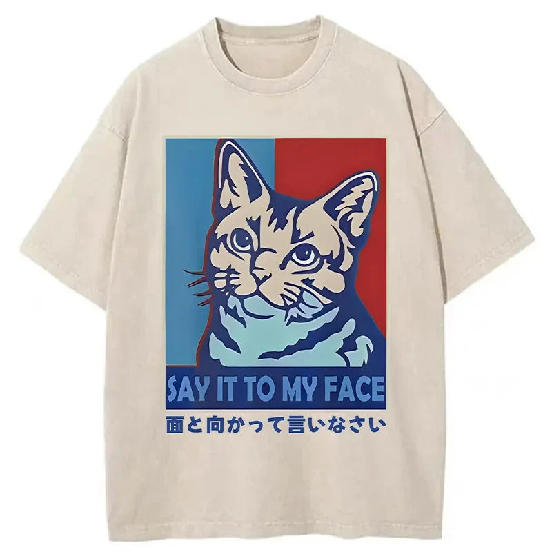 Confused Cat Eating Ramen Washed Vintage T-Shirt