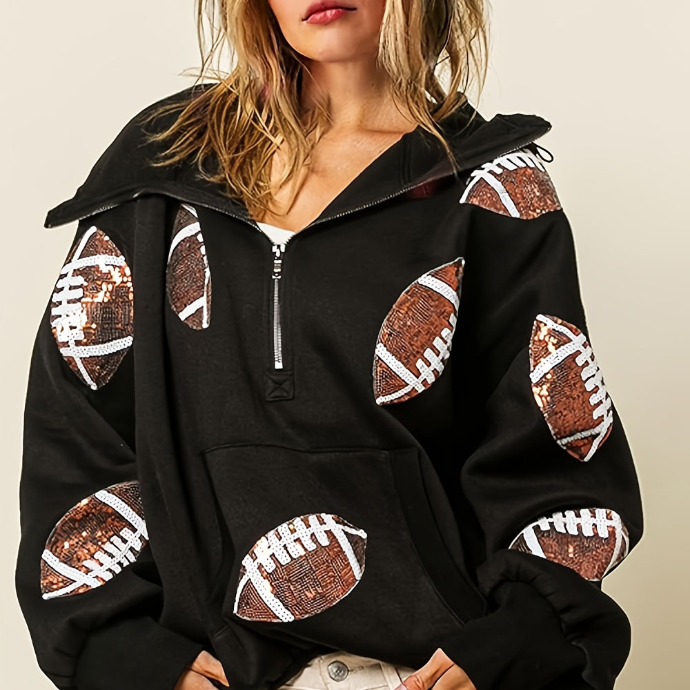 Women'S Football Print Casual Long-Sleeved Zipper Pullover