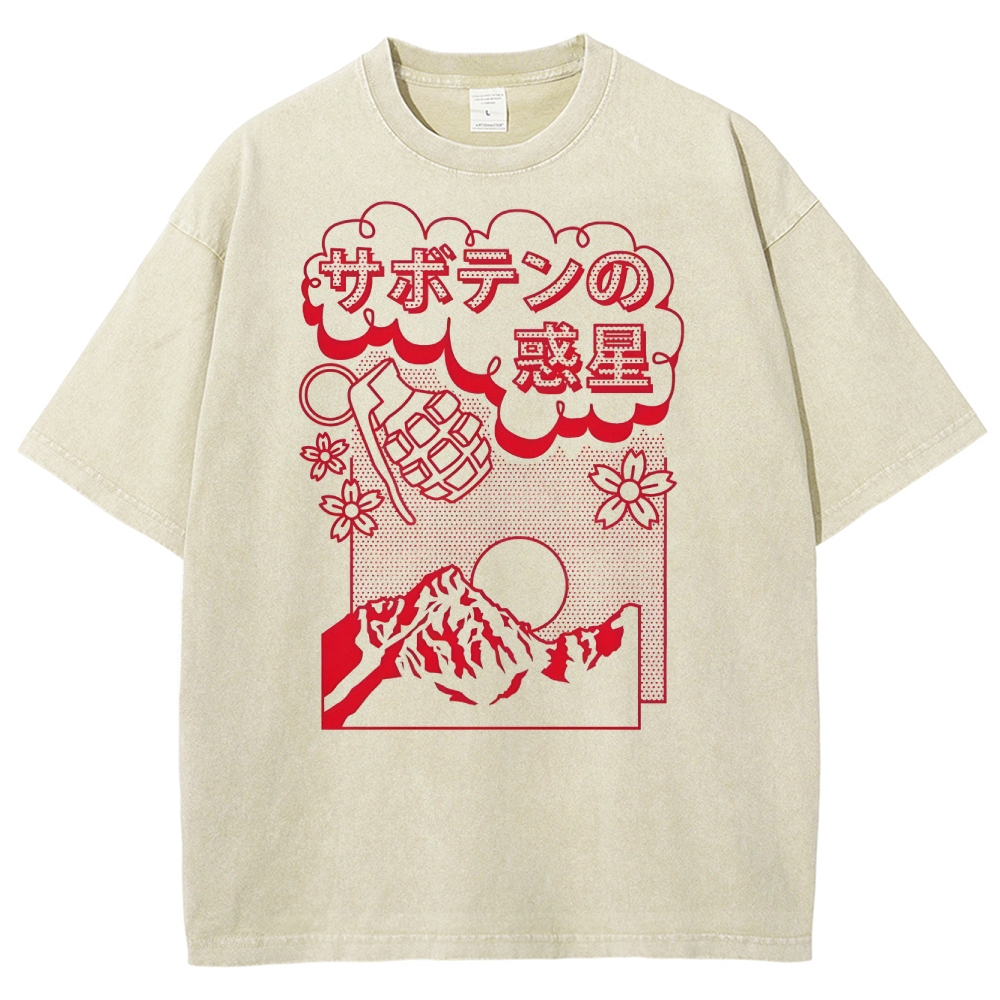 Japan Power Pattern Washed Vintage Short Sleeves T-Shirt