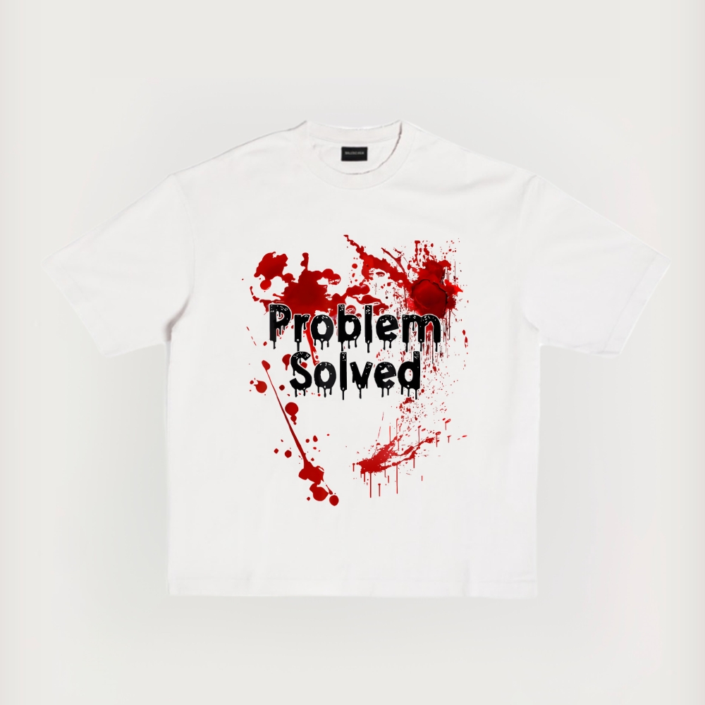 Unisex Fit Vintage Bloody Problem Solved Halloween Prints Short-Sleeved T-Shirt