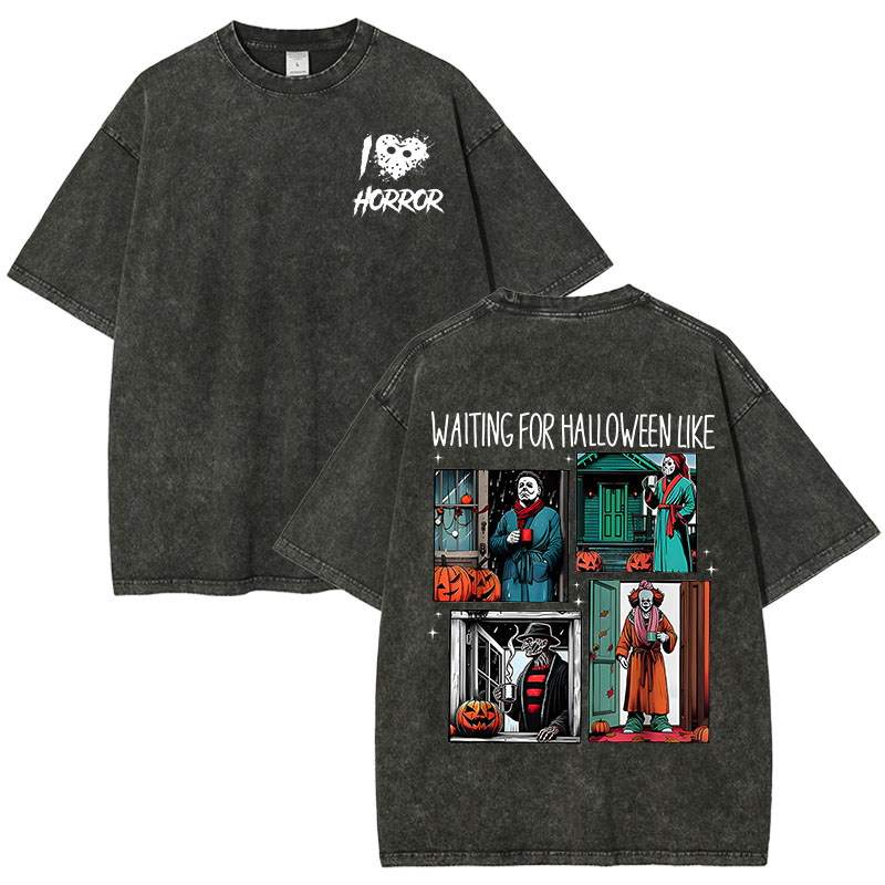 Unisex Fit Waiting For Halloween Like…… Washed T-Shirt