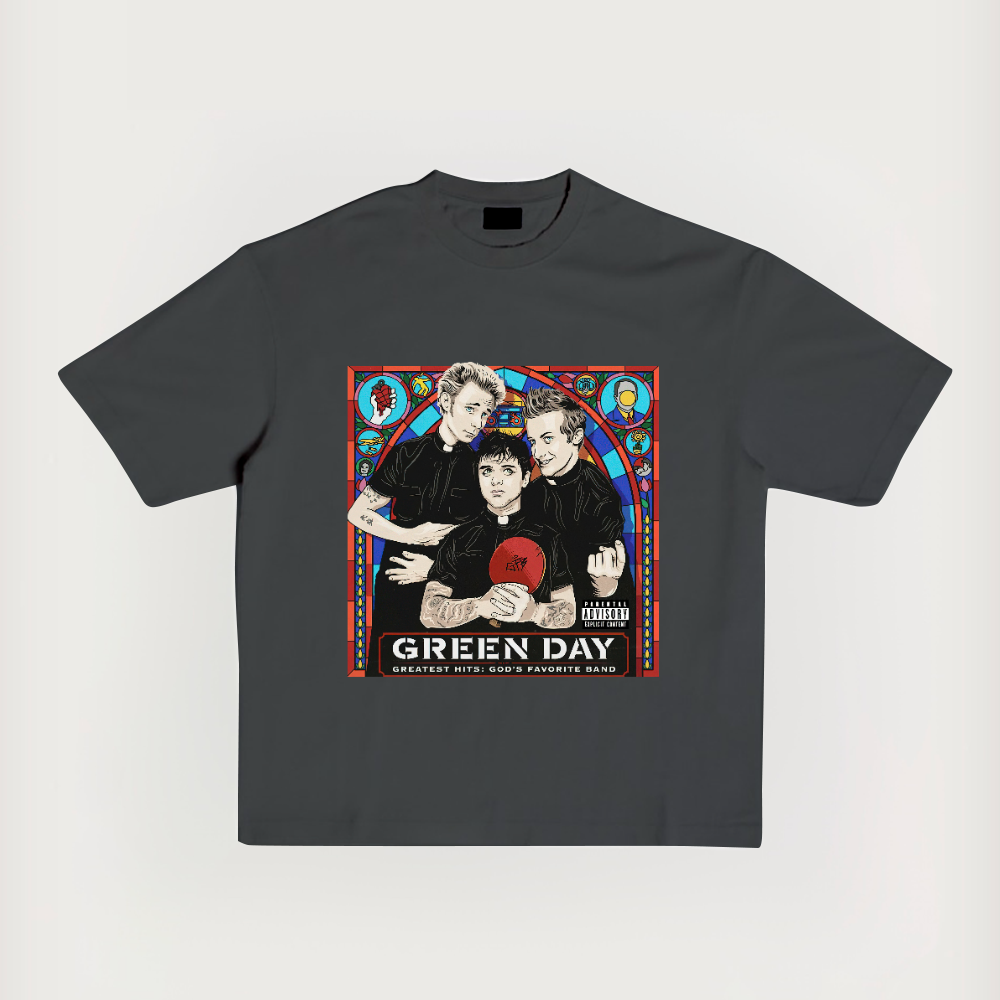 Green Day Retro Art Printed Short-sleeved T-shirt