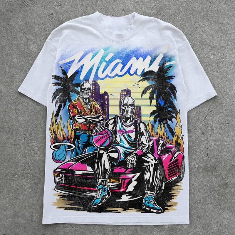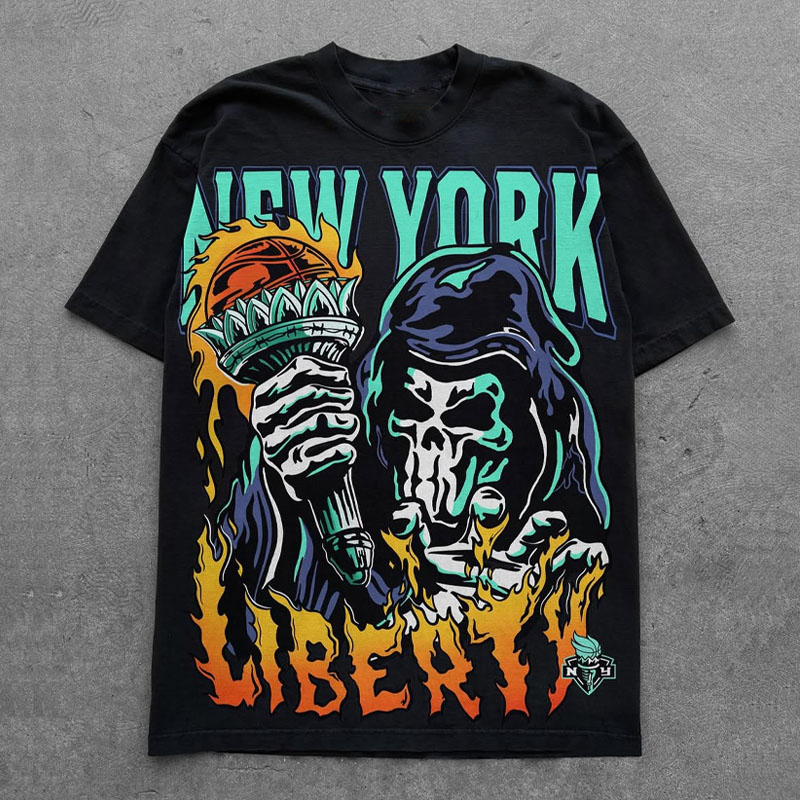 Basketball Skull Flame Print Short-Sleeved T-Shirt