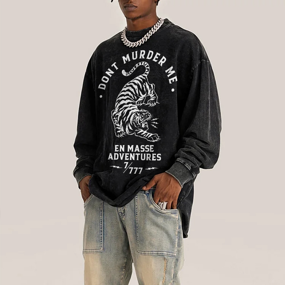 Tiger Pattern Printed Deep Washed Vintage Long Sleeves T-Shirt