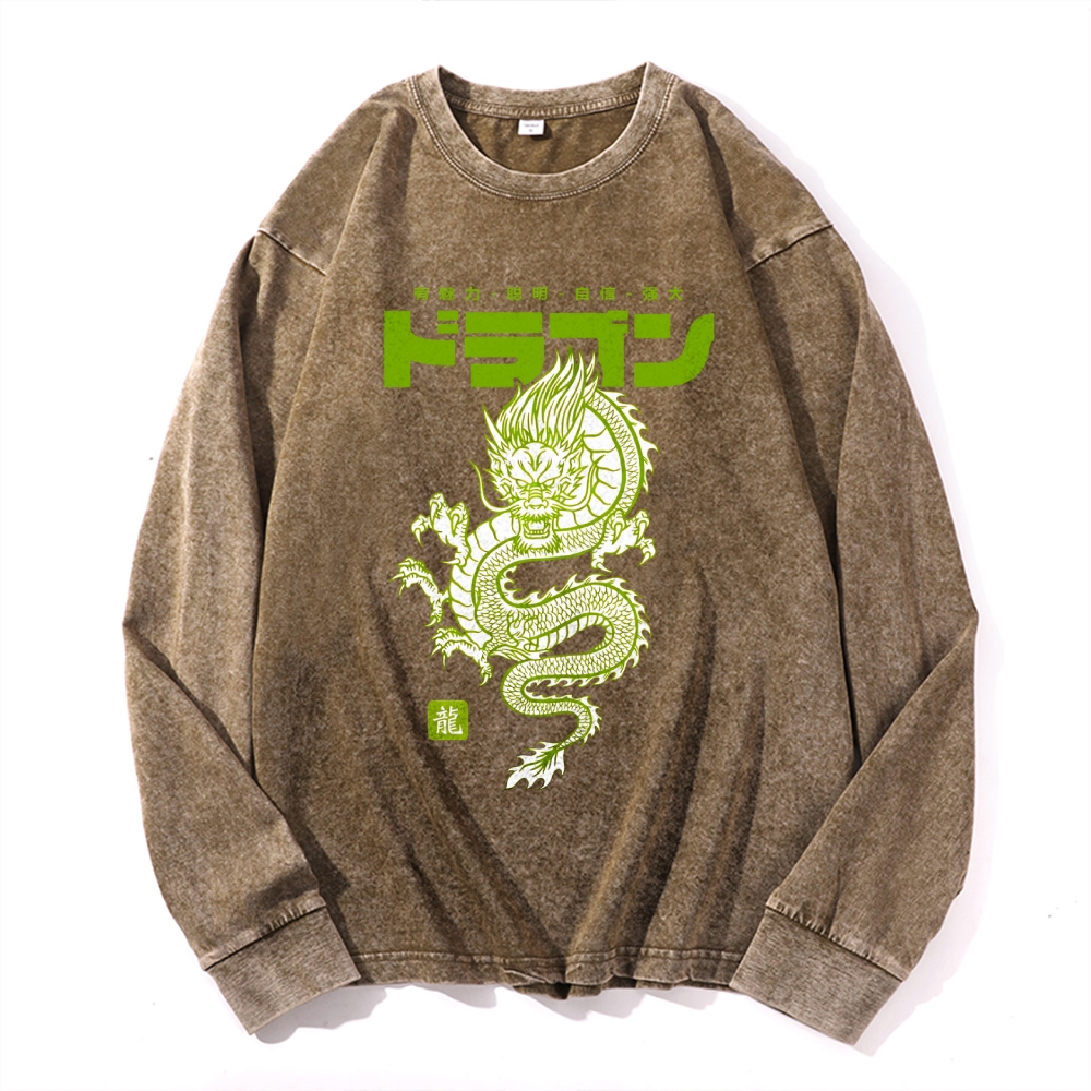 Loong Totem Casual Deep Washed Vintage Long Sleeves T-Shirt