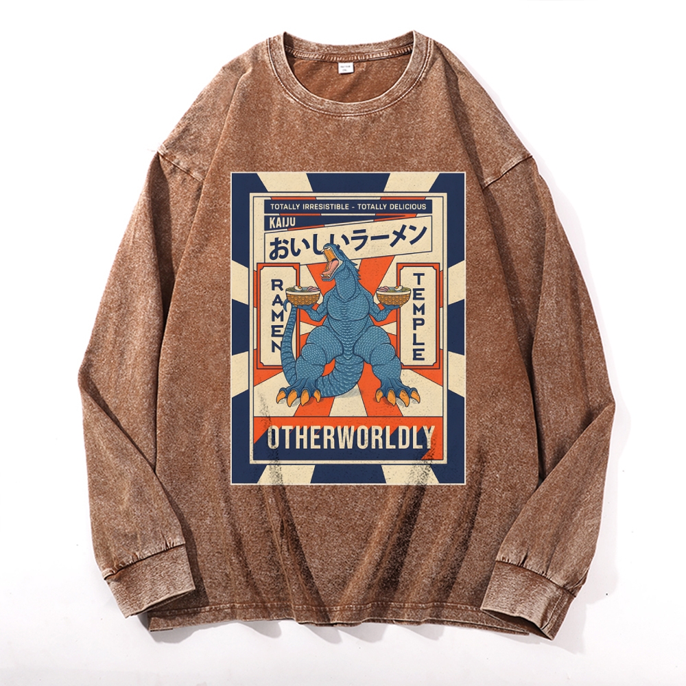 Ramen Godzilla Deep Washed Vintage Long Sleeves T-Shirt