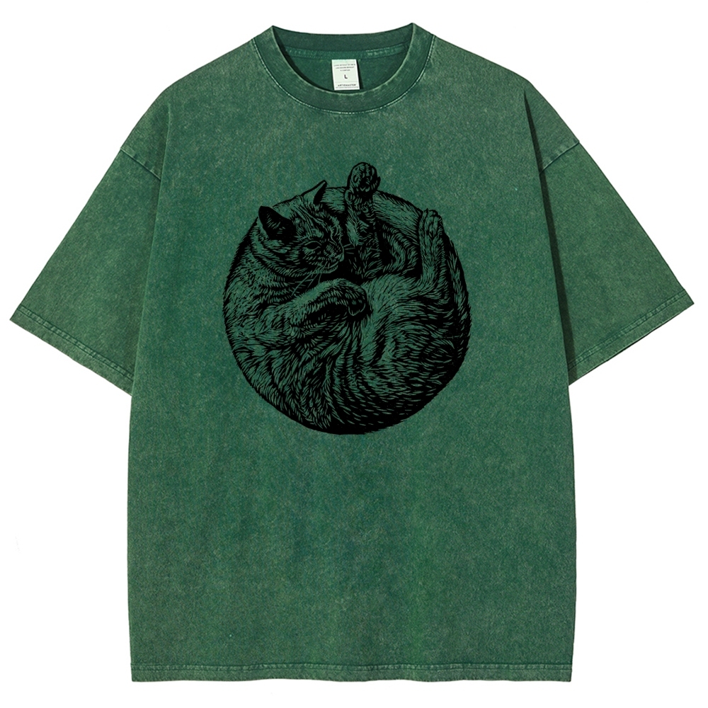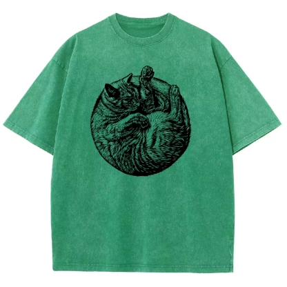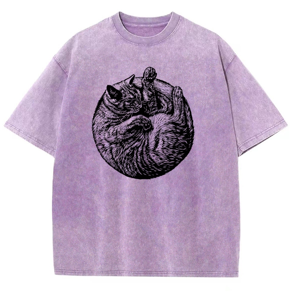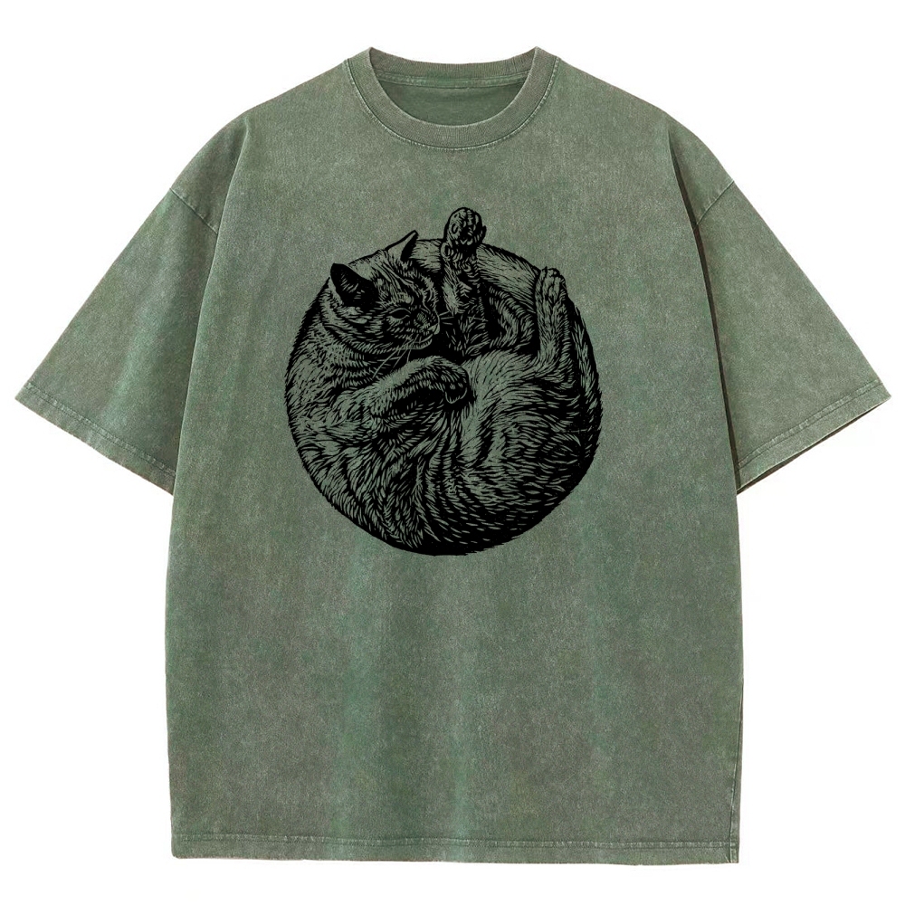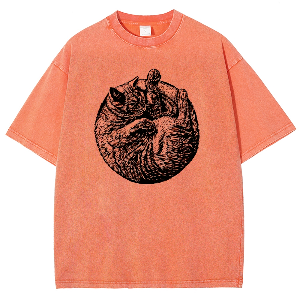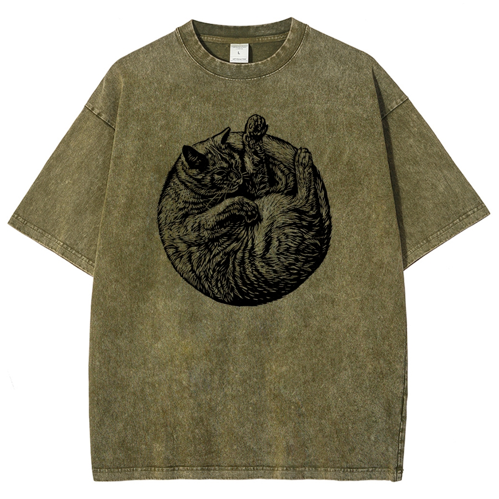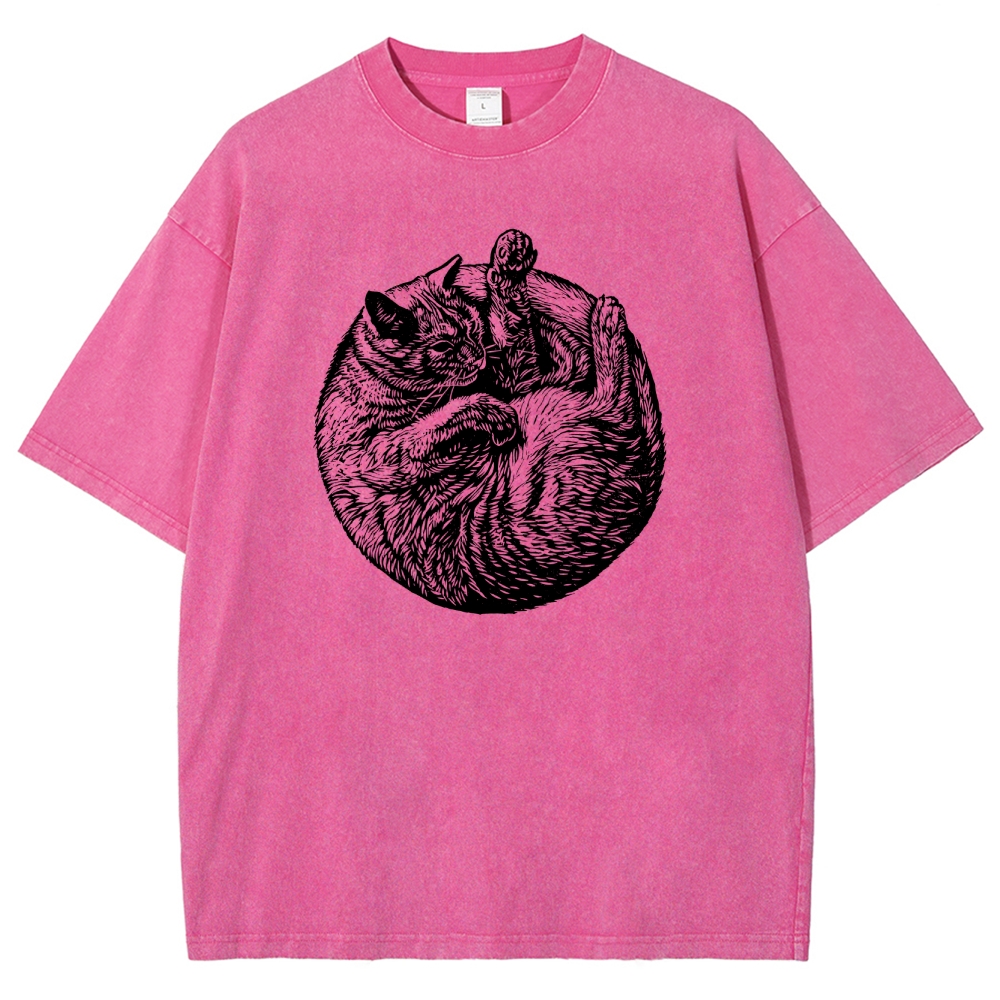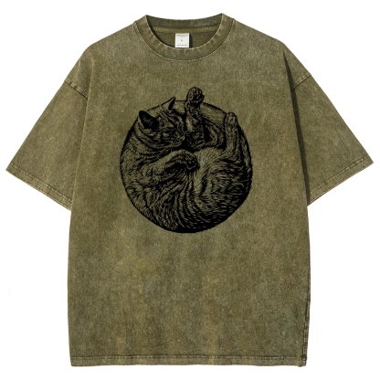 A Cat Circle Washed Vintage Short Sleeves T-Shirt
