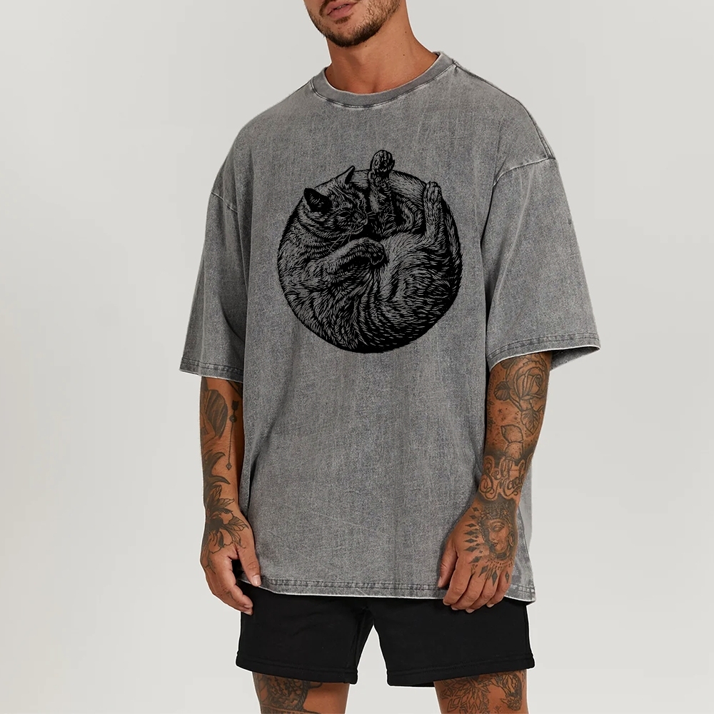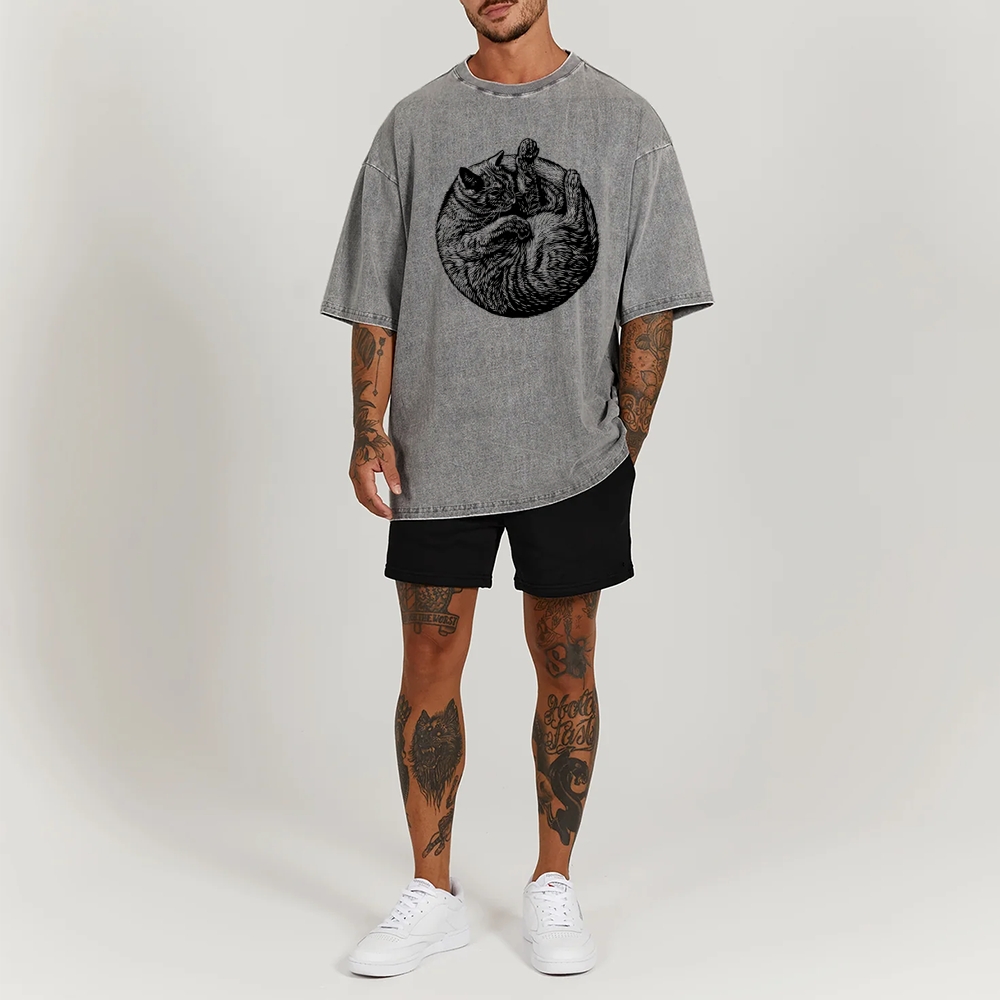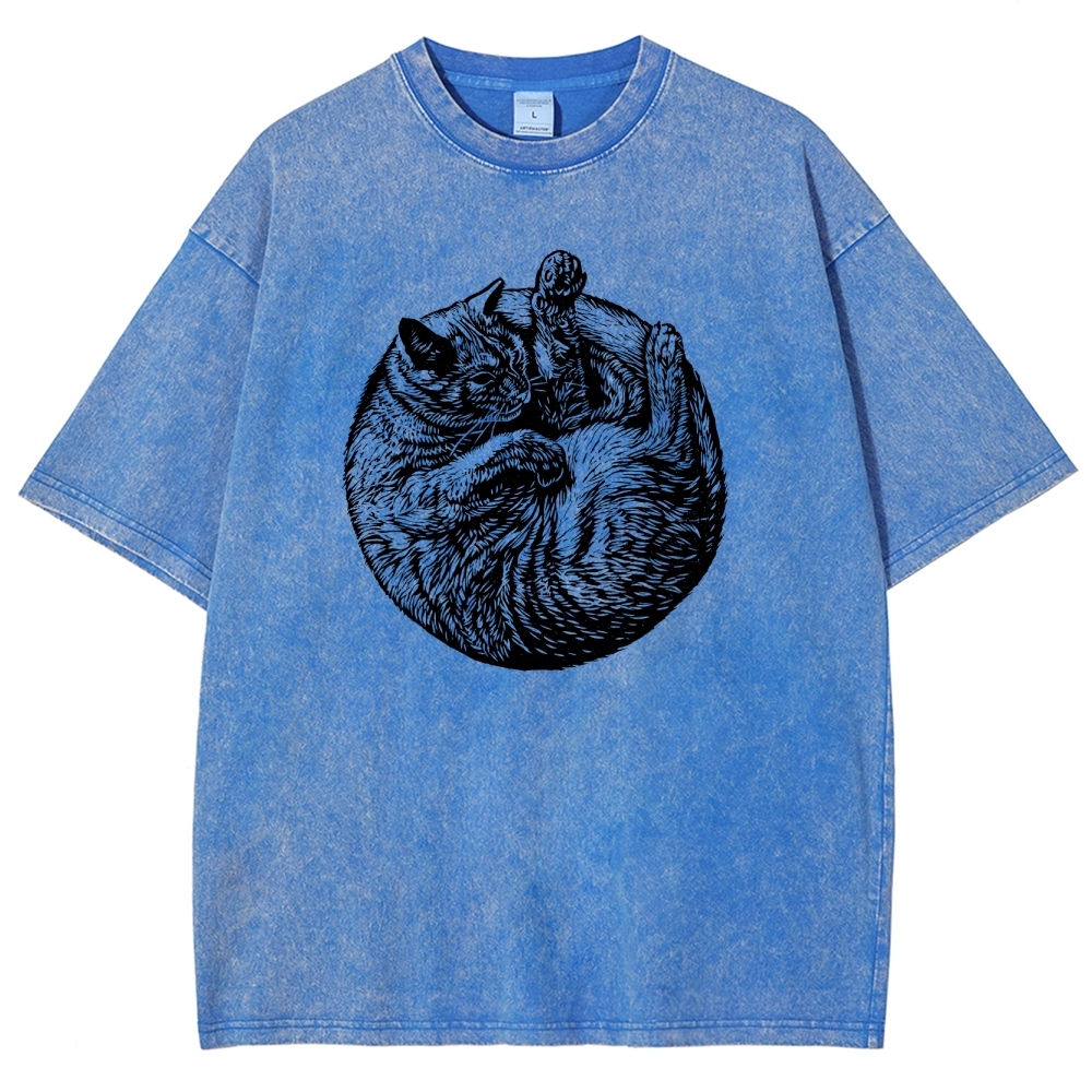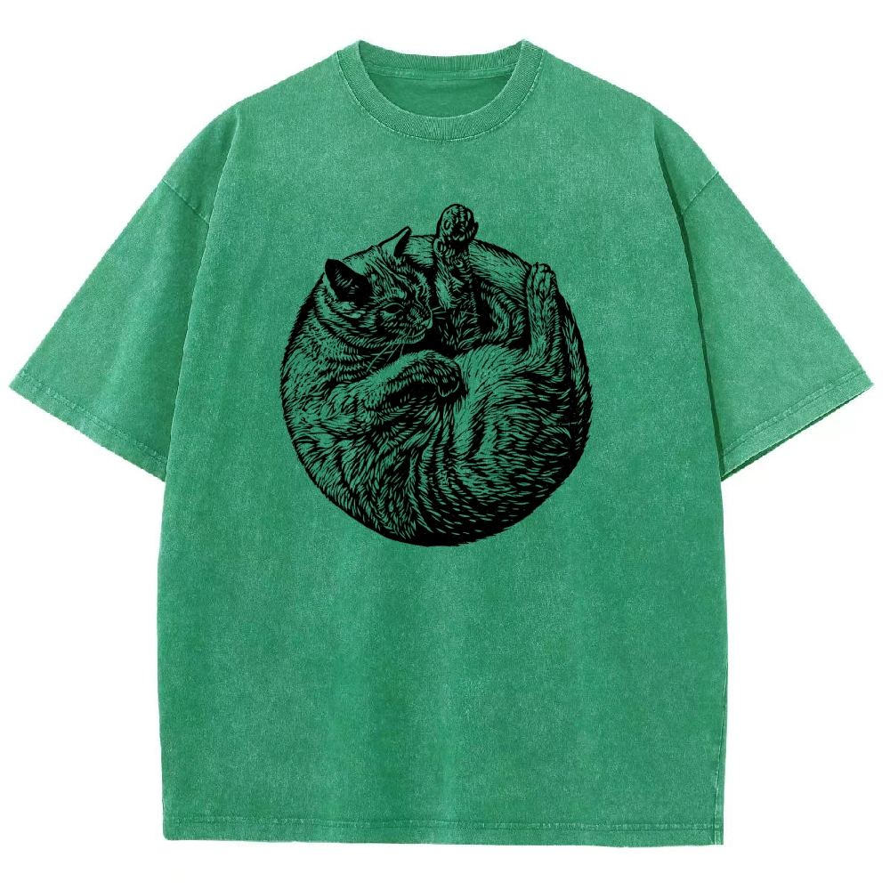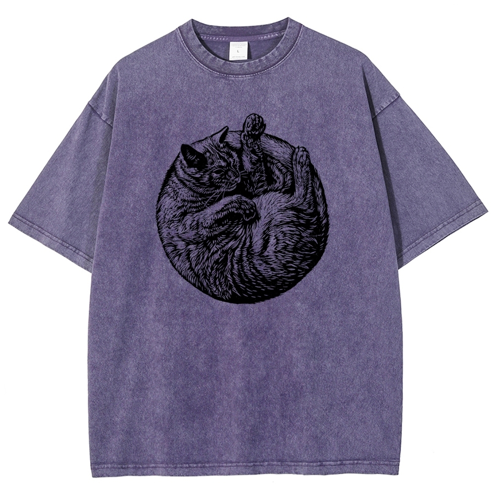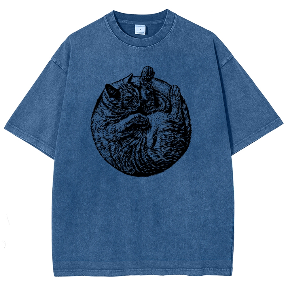 A Cat Circle Washed Vintage Short Sleeves T-Shirt