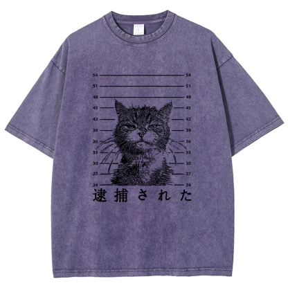 Arrest Cat Unisex Fit Washed T-Shirt