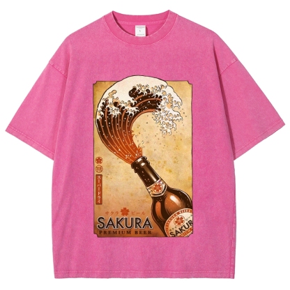 Beer Wave Washed Vintage Short Sleeves T-Shirt