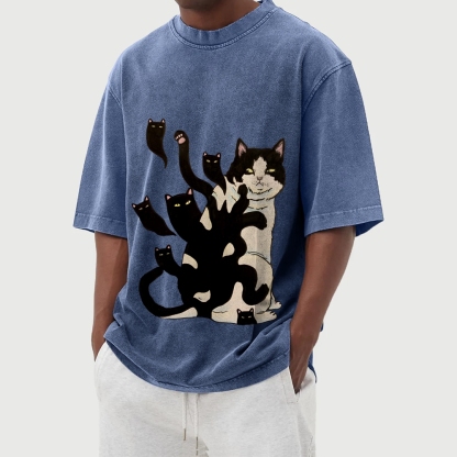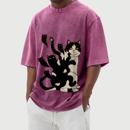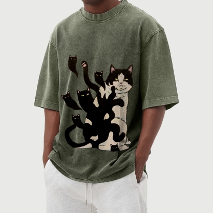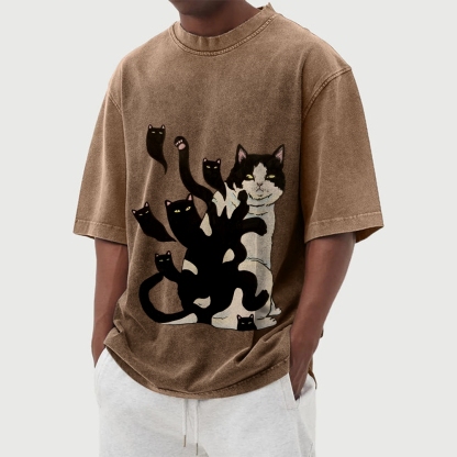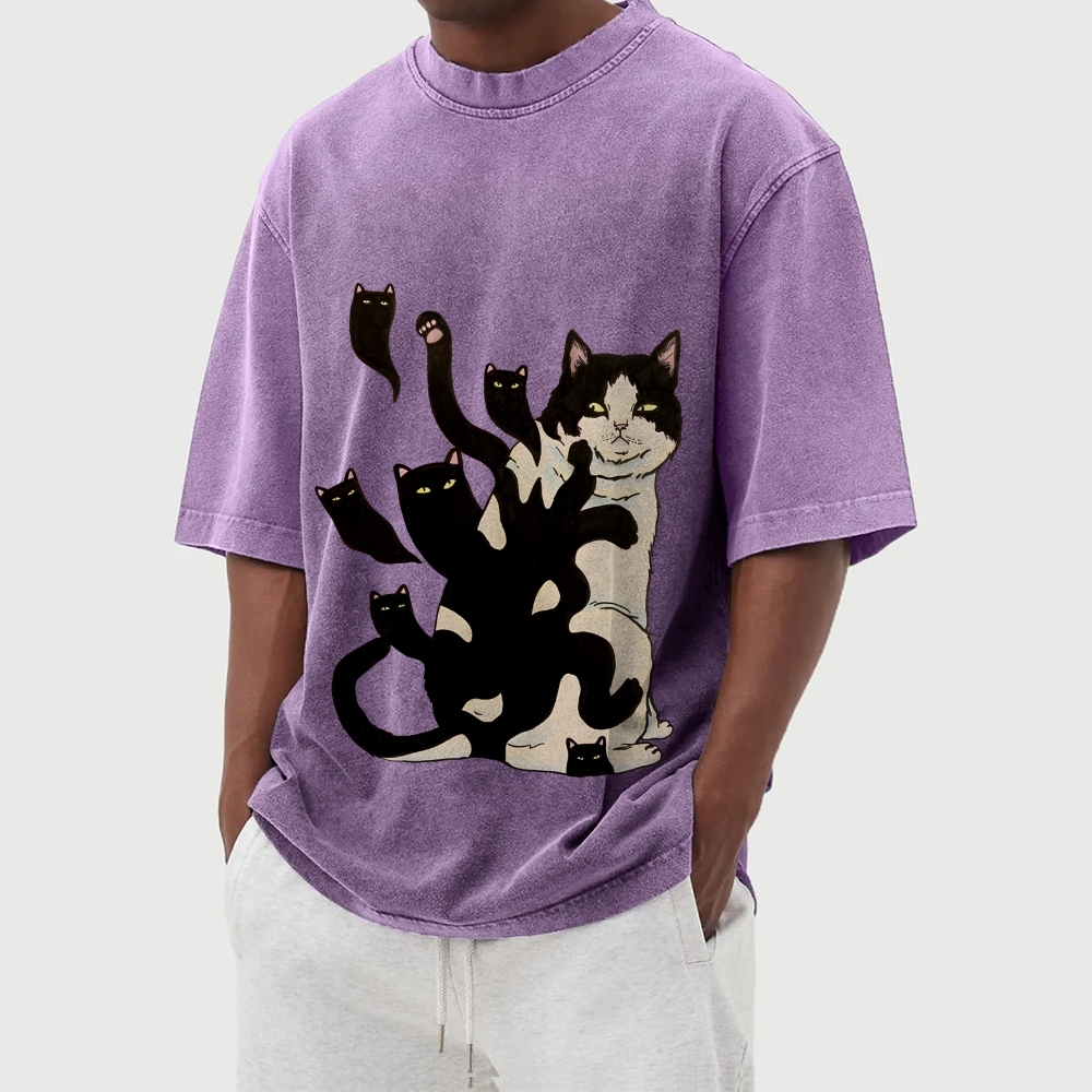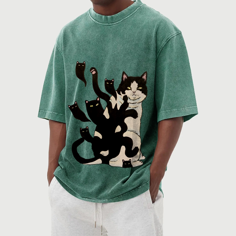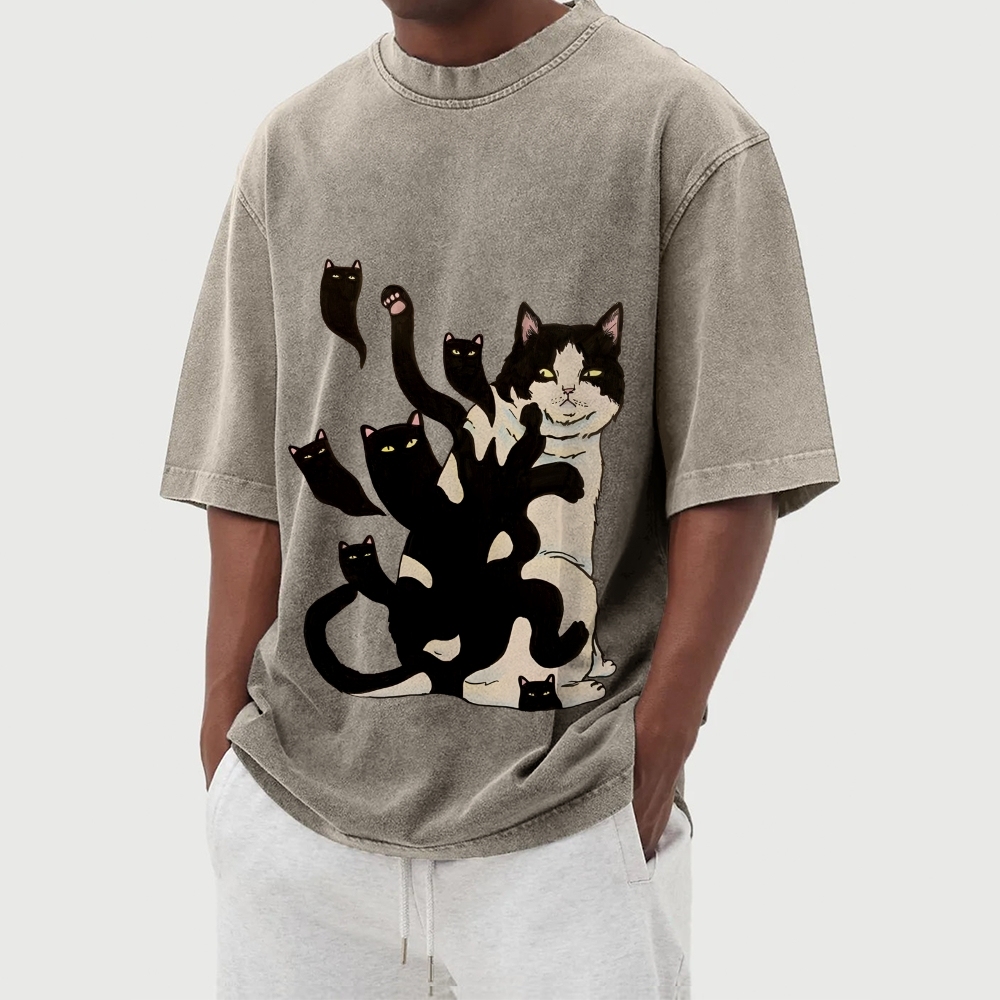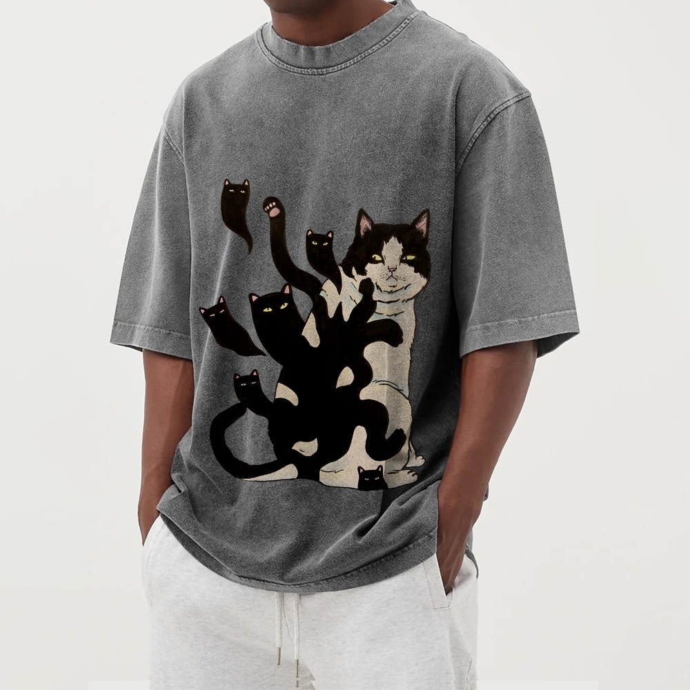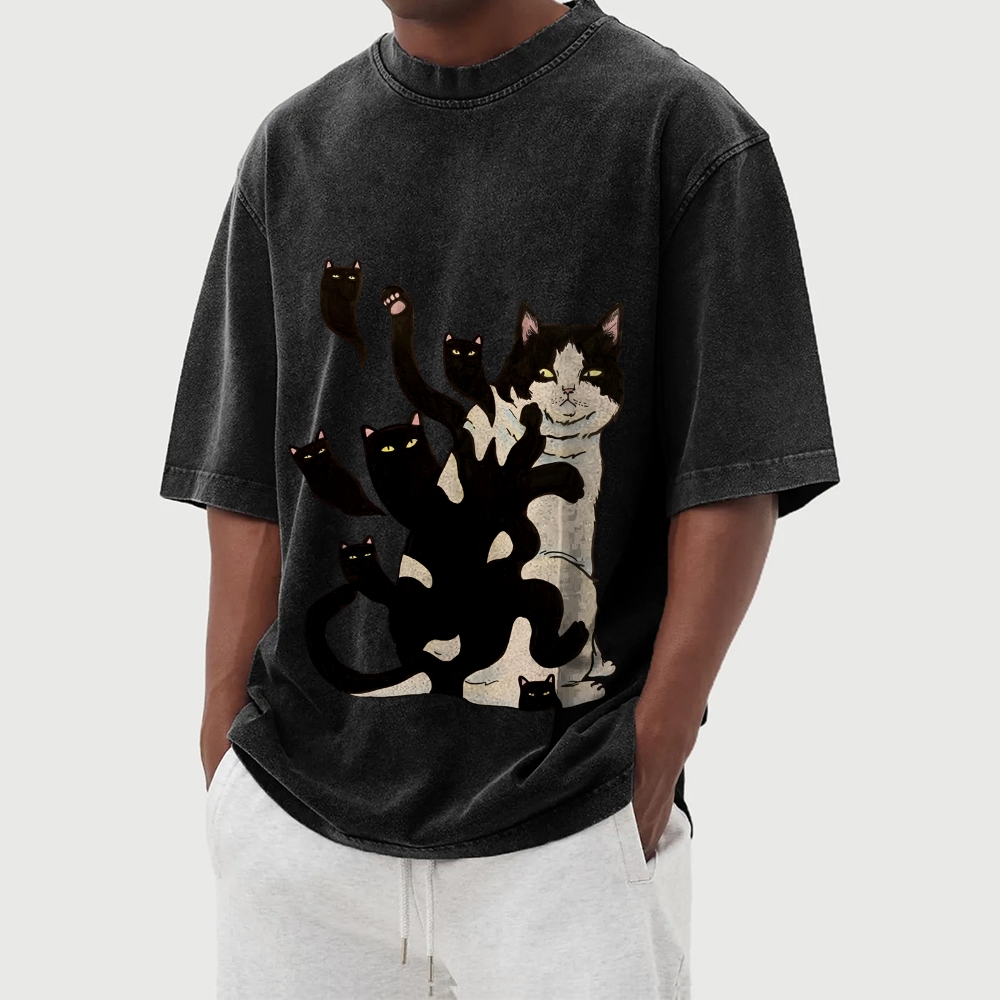 Black Cat Soul Washed Vintage Short Sleeves T-Shirt