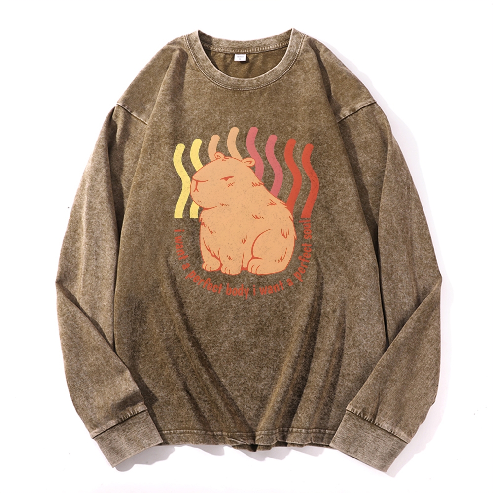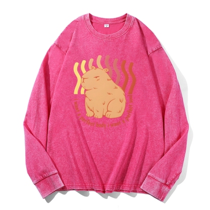 Capybara Casual Deep Washed Vintage Long Sleeves T-Shirt