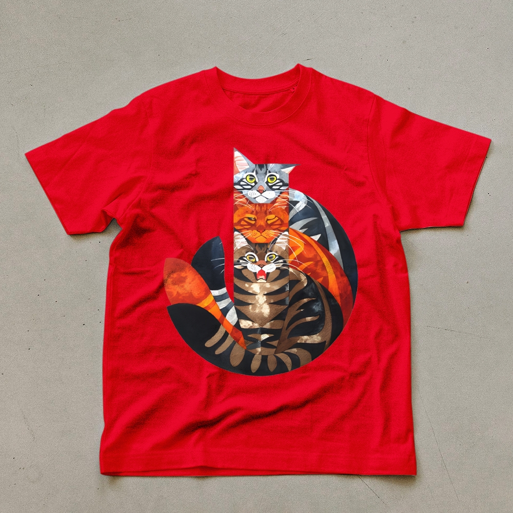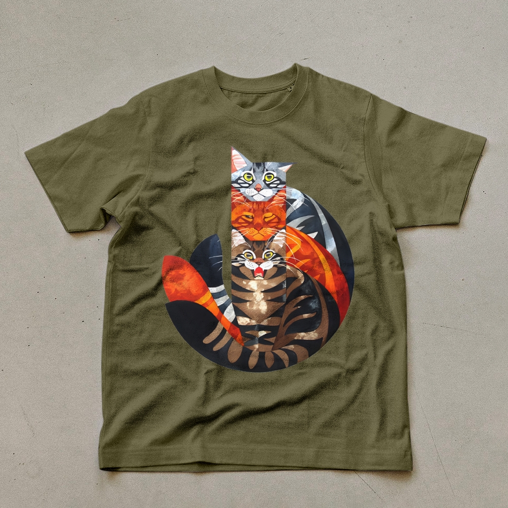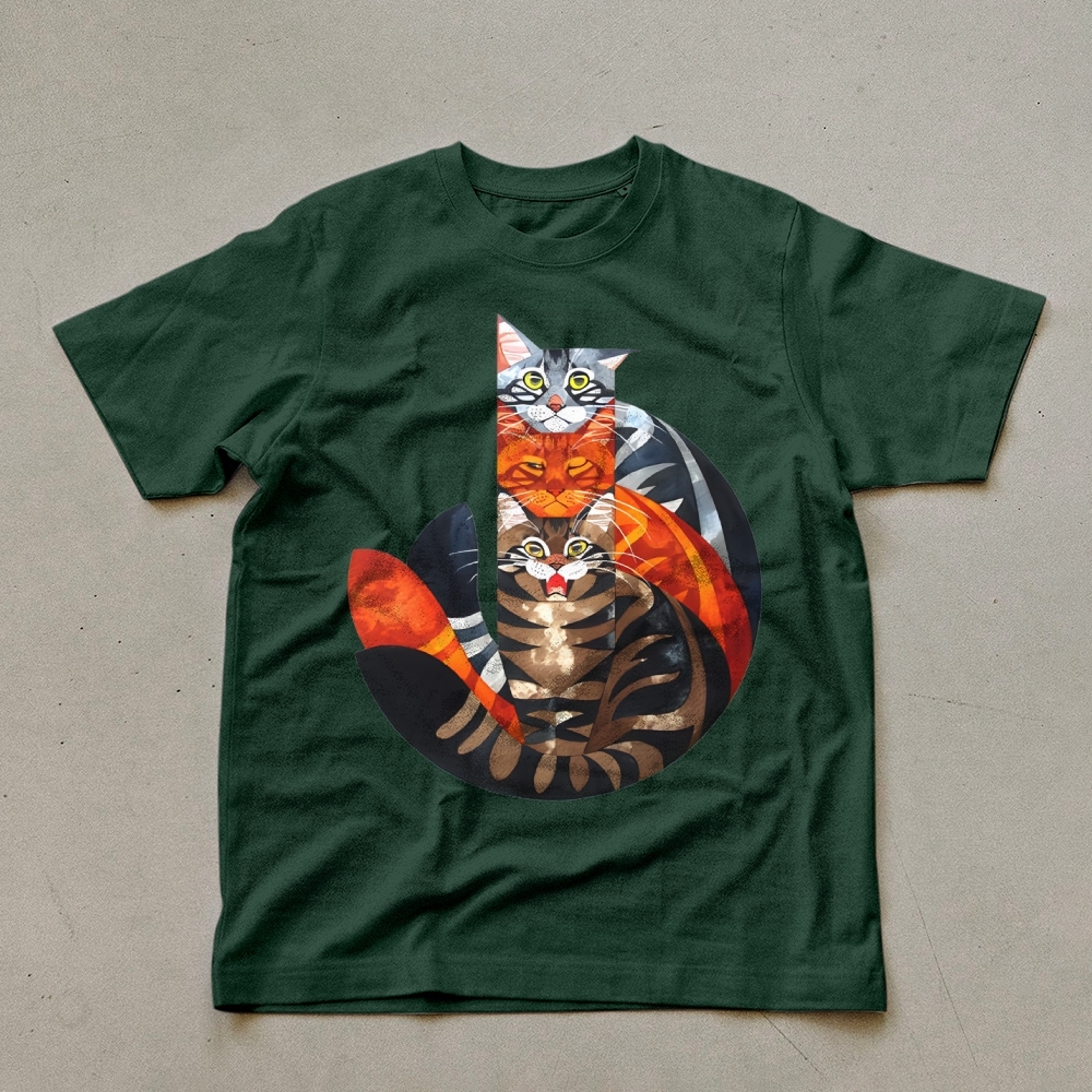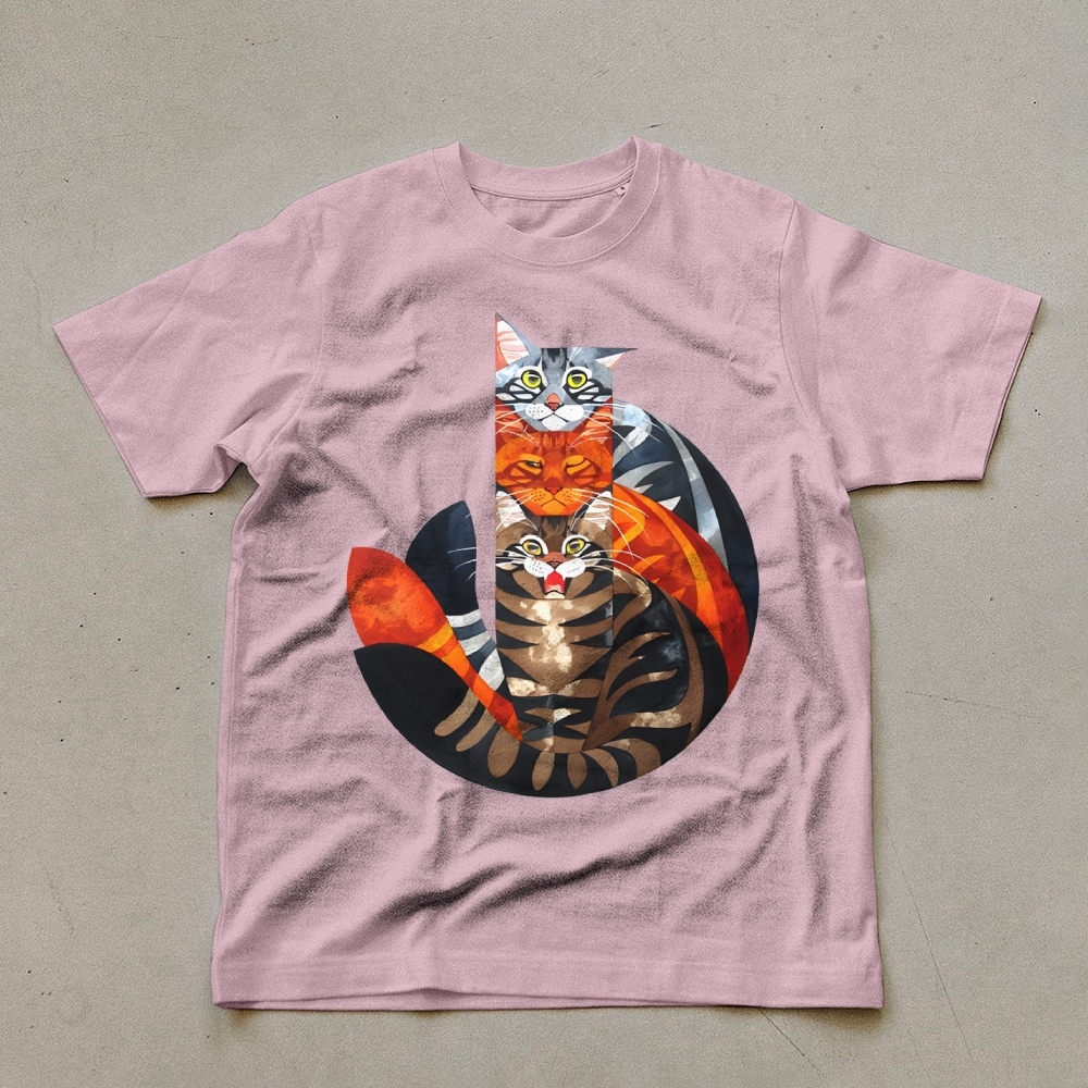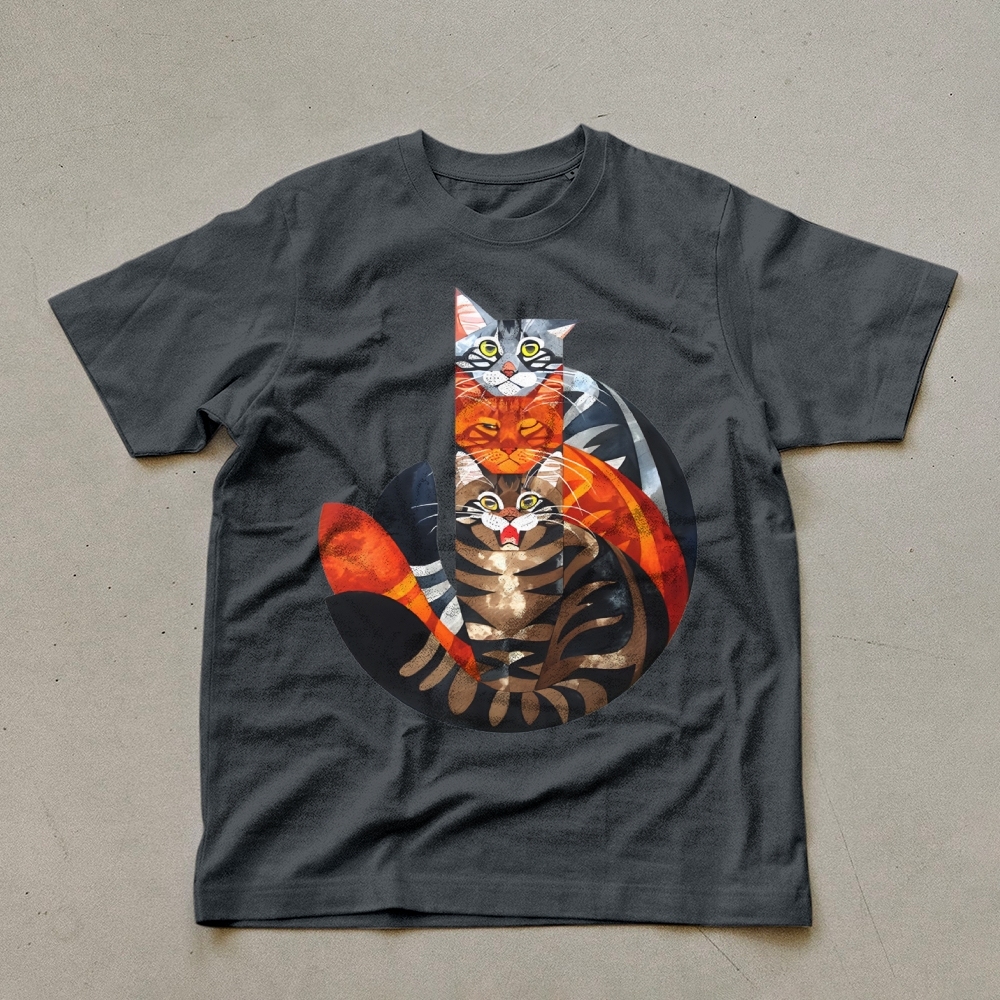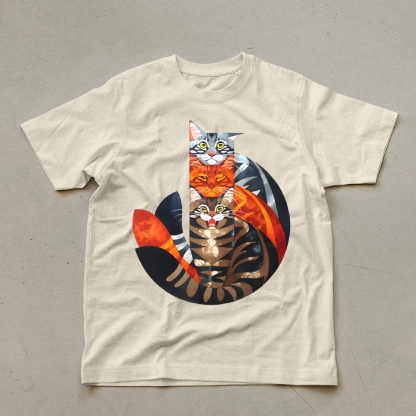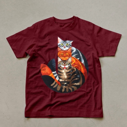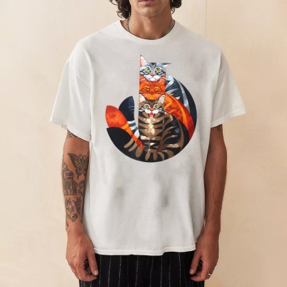 Casual Cat Jenga Pattern Unisex Prints T-Shirt