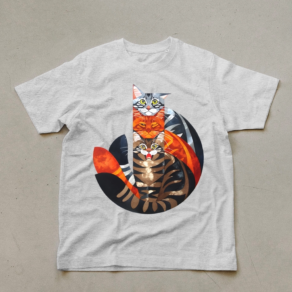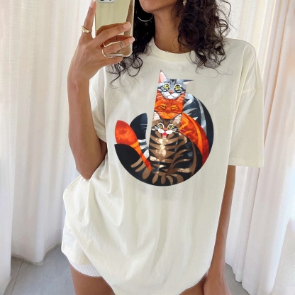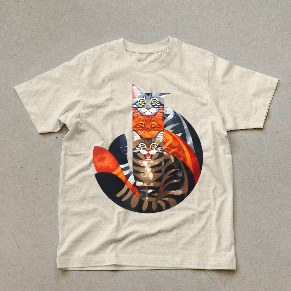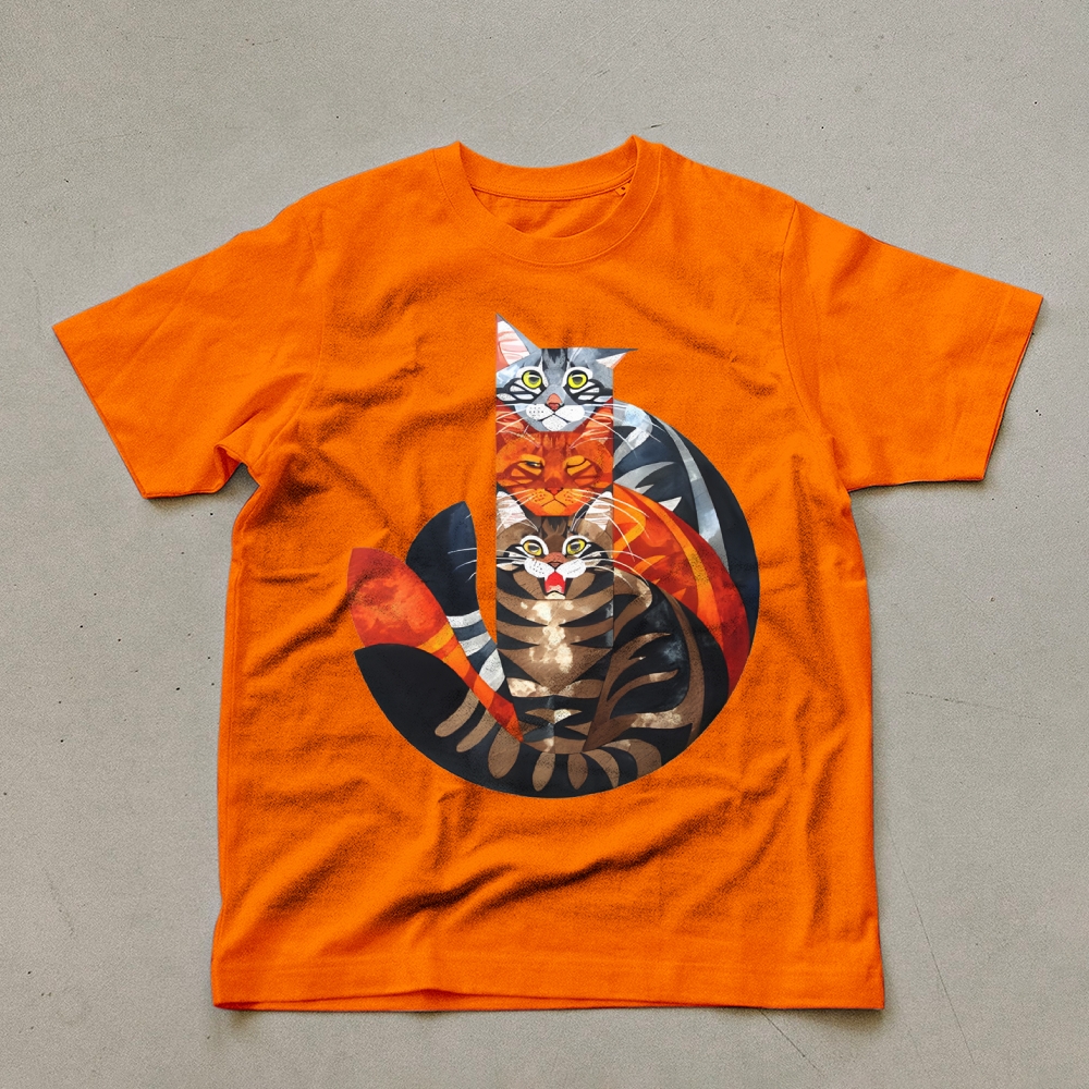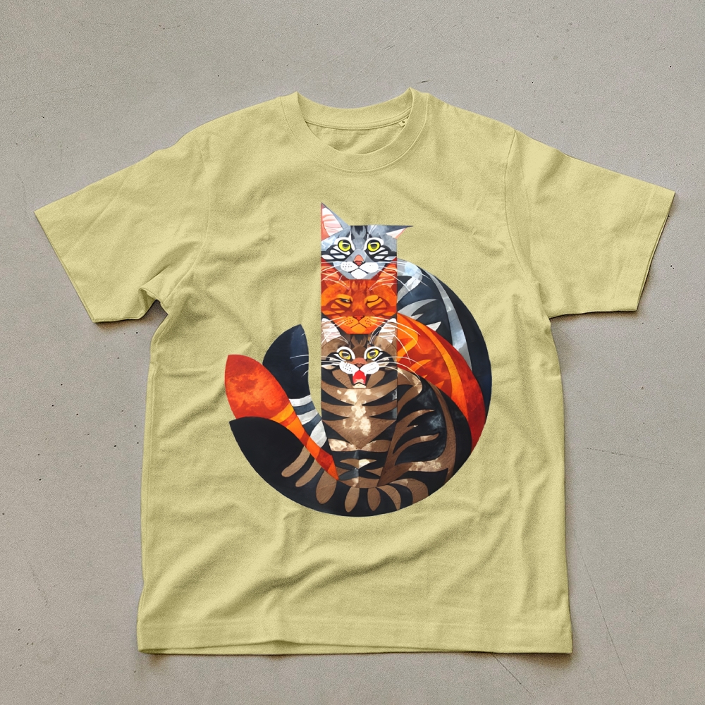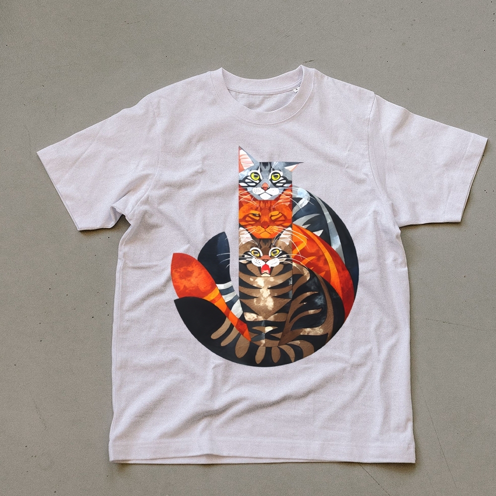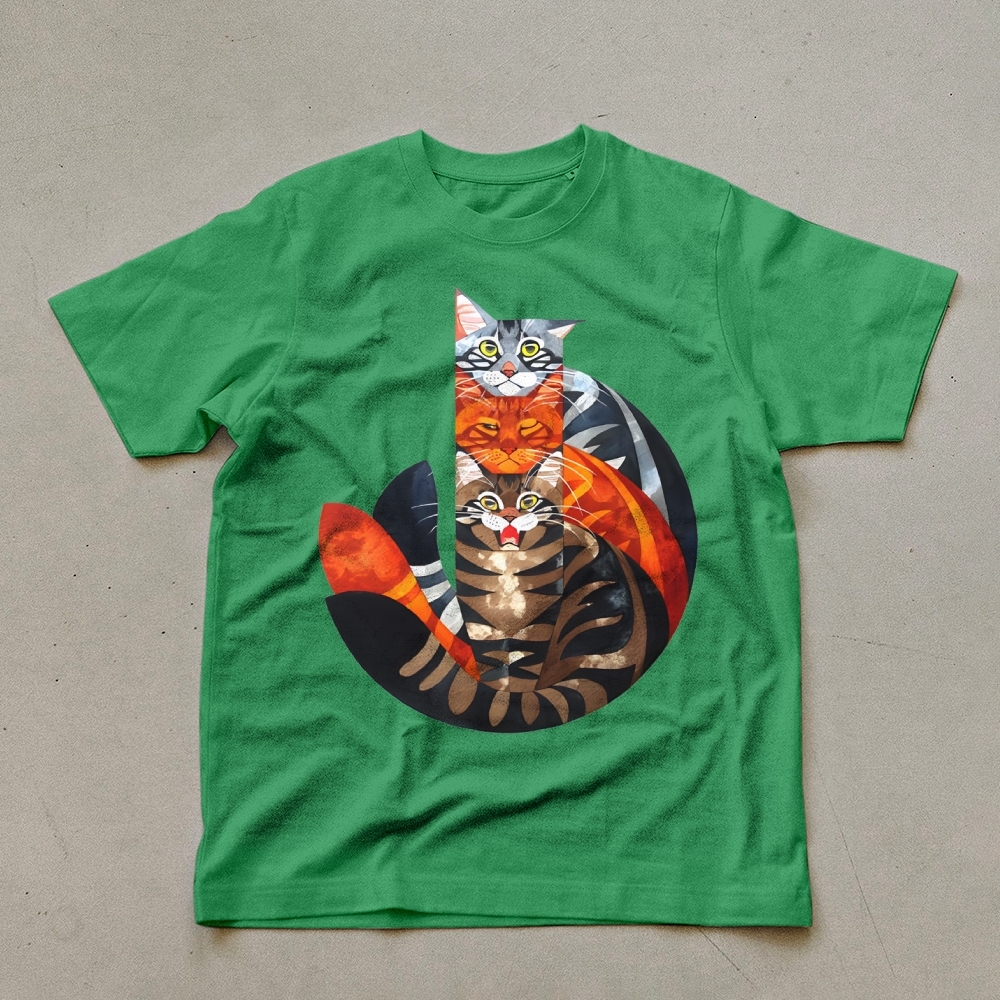 Casual Cat Jenga Pattern Unisex Prints T-Shirt