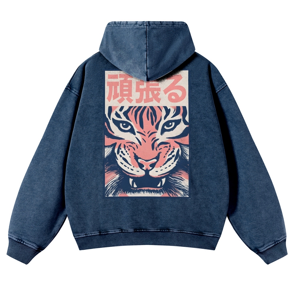 Casual Tiger Pattern Vintage Washed Hoodie