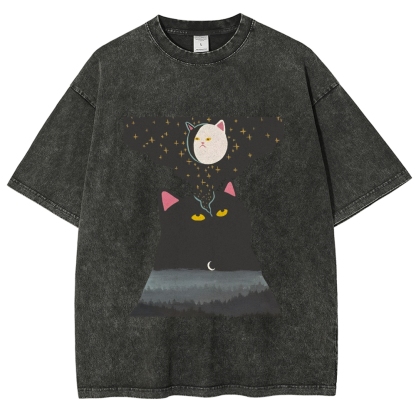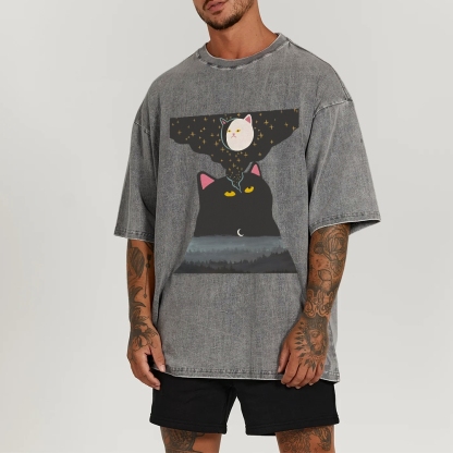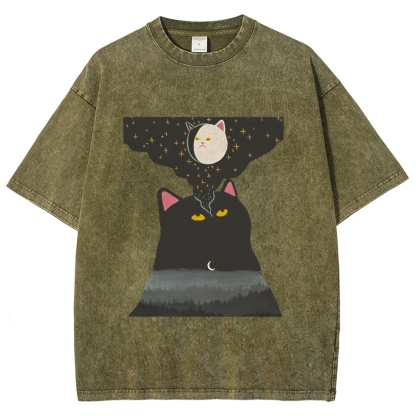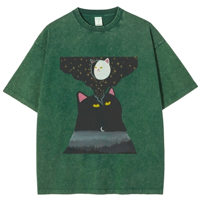 Cat‘s Fantasy Washed Vintage Short Sleeves T-Shirt