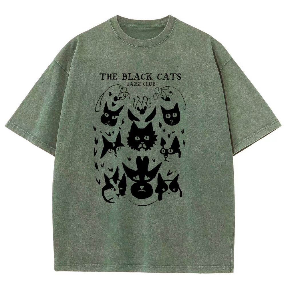 Cats Printed Washed Vintage Short Sleeves T-Shirt