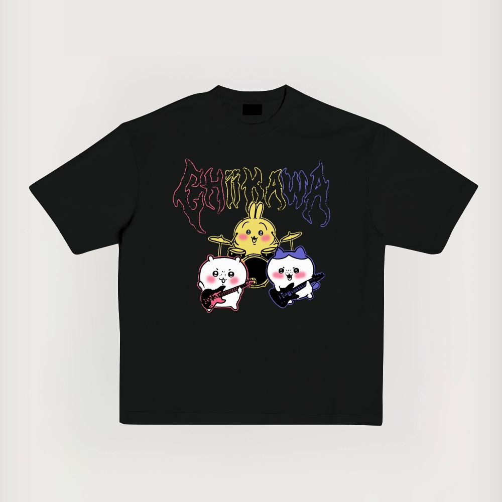 Colorful Chiikawa Rock Band Printed Short-Sleeved T-Shirt