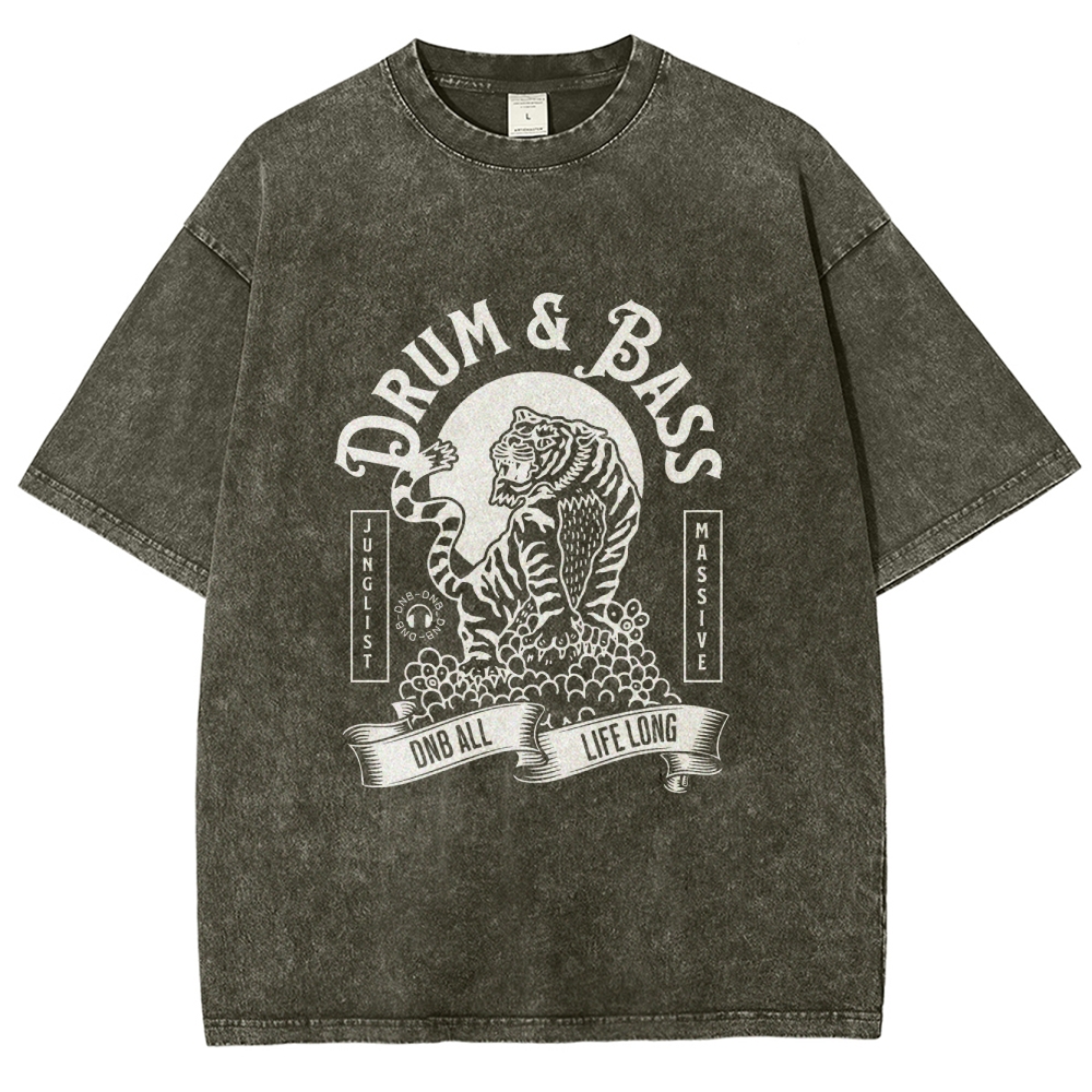 Drum Bass Washed Vintage Short Sleeves T-Shirt
