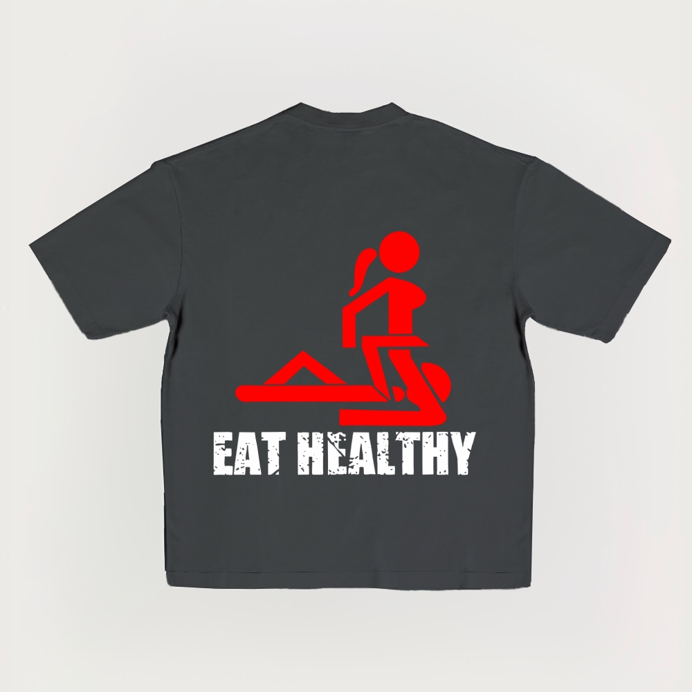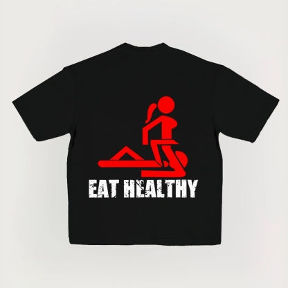 Eat Healthy Adult Humor Printed Short-Sleeved T-Shirt