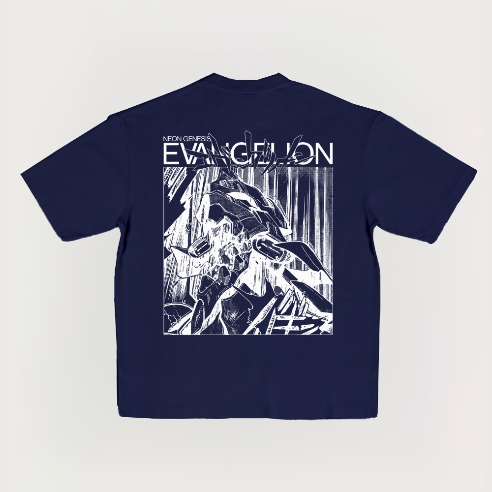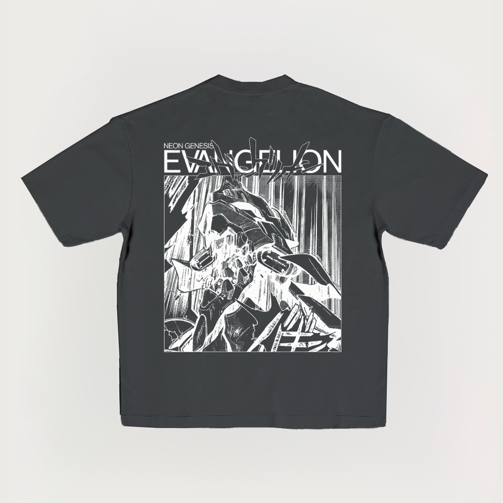 Evangelion Japan Cartoon Neon Printed Short-Sleeved T-Shirt