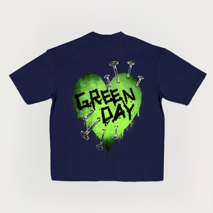 Green Day Nail Heart Printed Short-sleeved T-shirt
