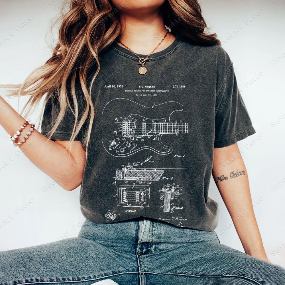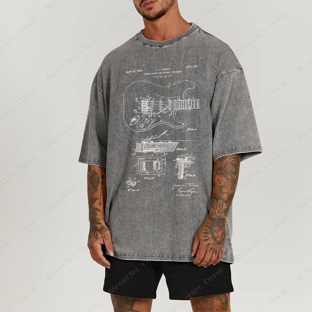 Guitar Patent Unisex Fit Washed T-Shirt