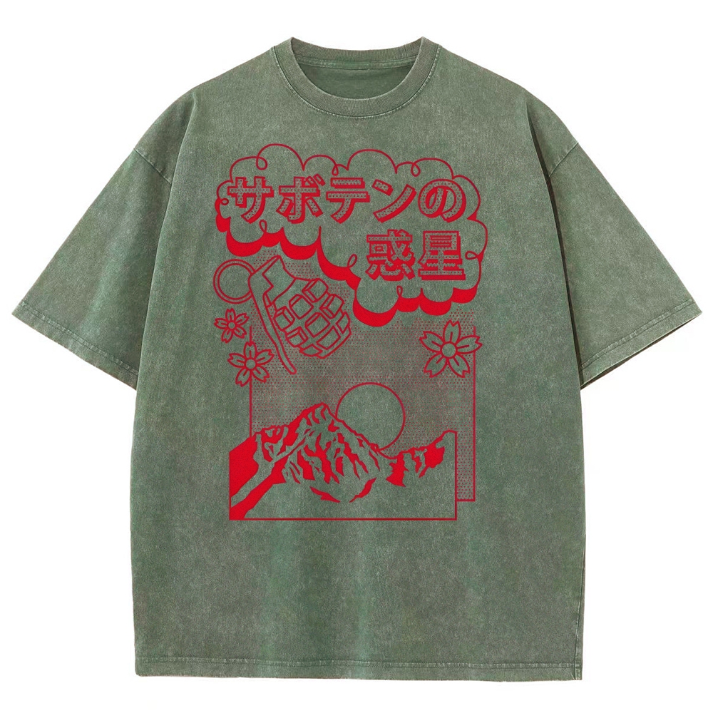 Hand Grenade Pattern Prints Washed Vintage Short Sleeves T-Shirt