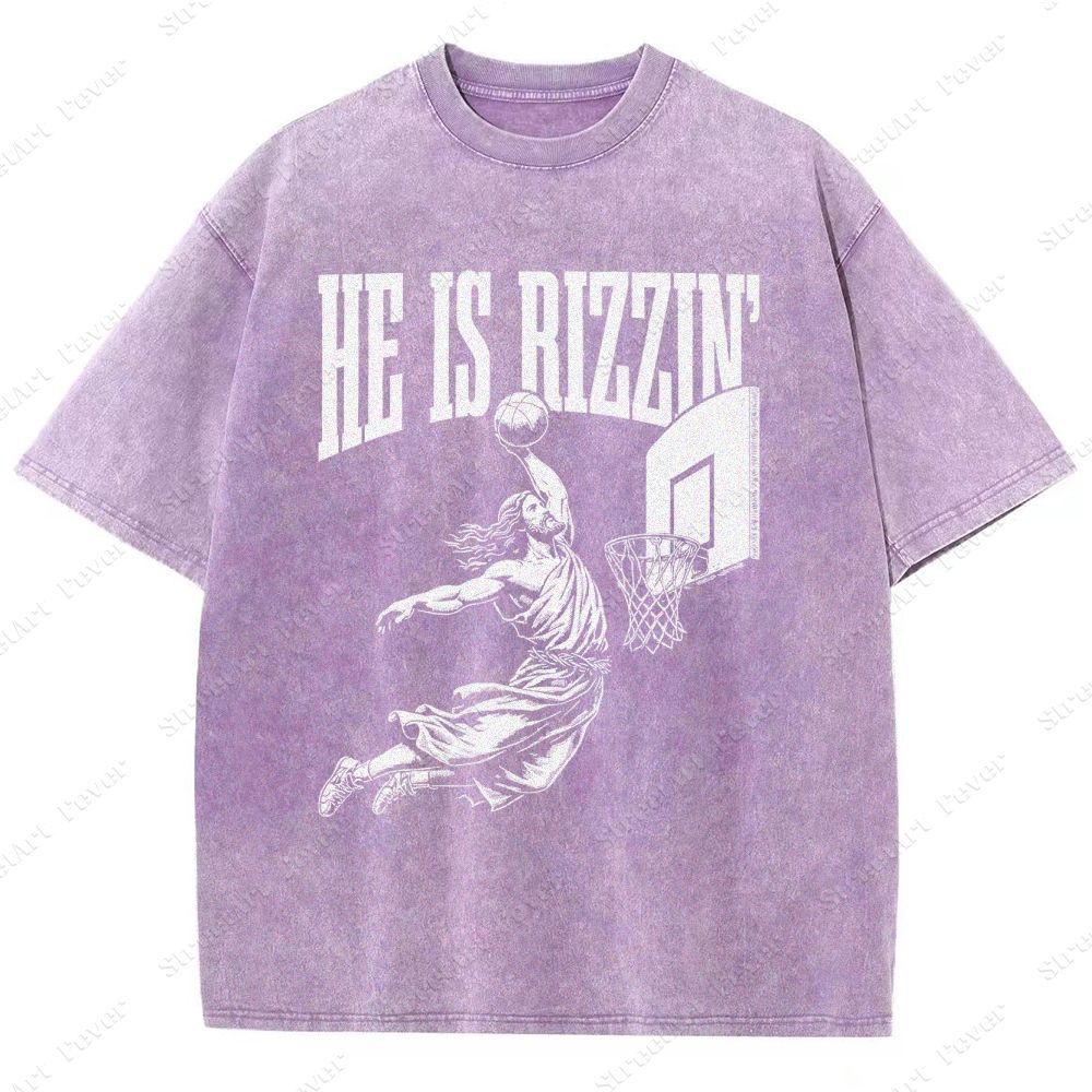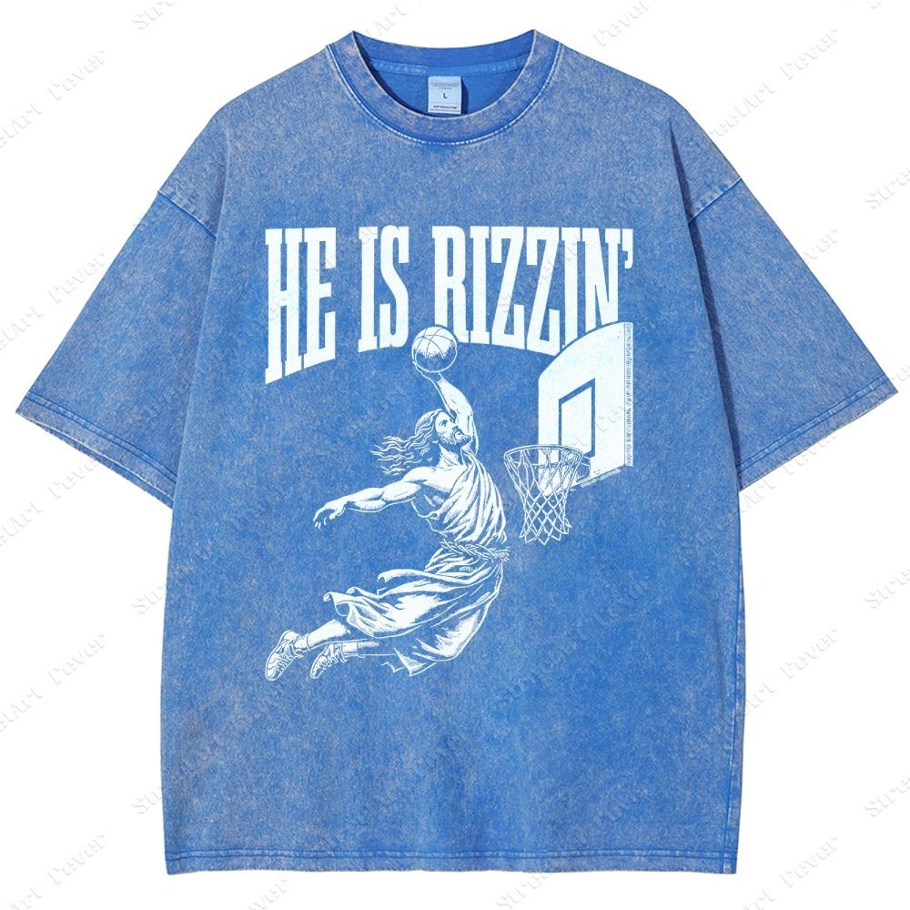 He Is Rizzin Christian Unisex Fit Washed T-Shirt