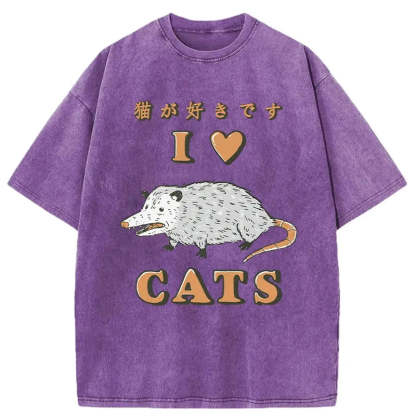 I Like Cats Washed Vintage T-Shirt