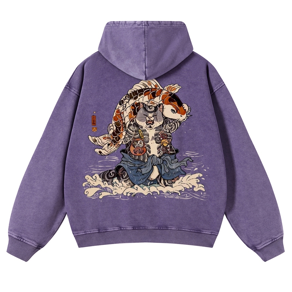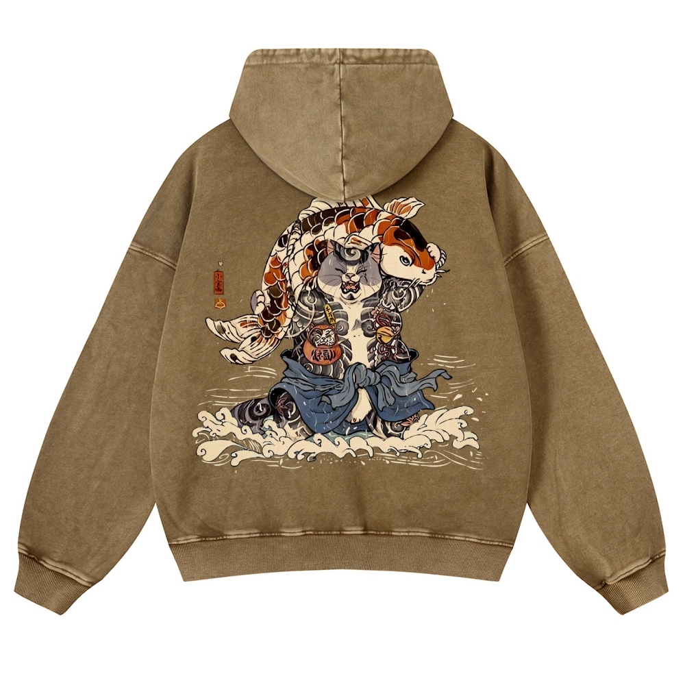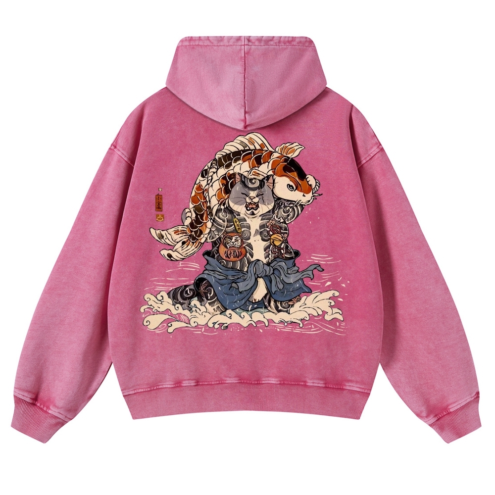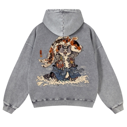 Japan Cat Story Vintage Washed Hoodie