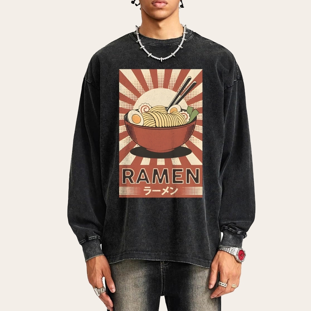 Japanese Ramen Pattern Deep Washed Vintage Long Sleeves T-Shirt
