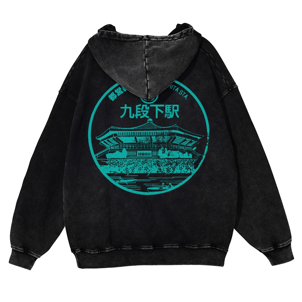 Japanese Station Sign Vintage Washed Hoodie