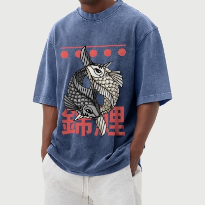 Koi Fish Washed Vintage Short Sleeves T-Shirt