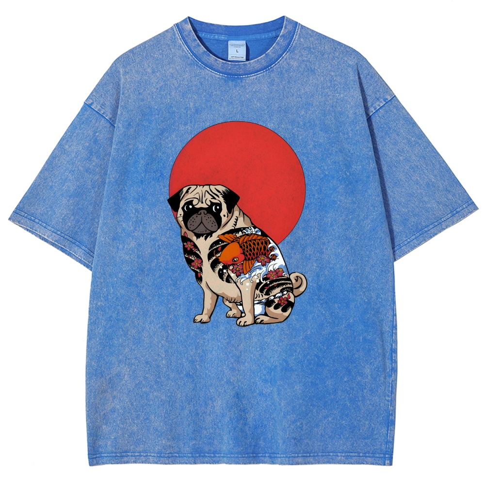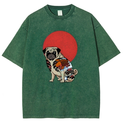 Koi Tattoo Dog Washed Vintage Short Sleeves T-Shirt