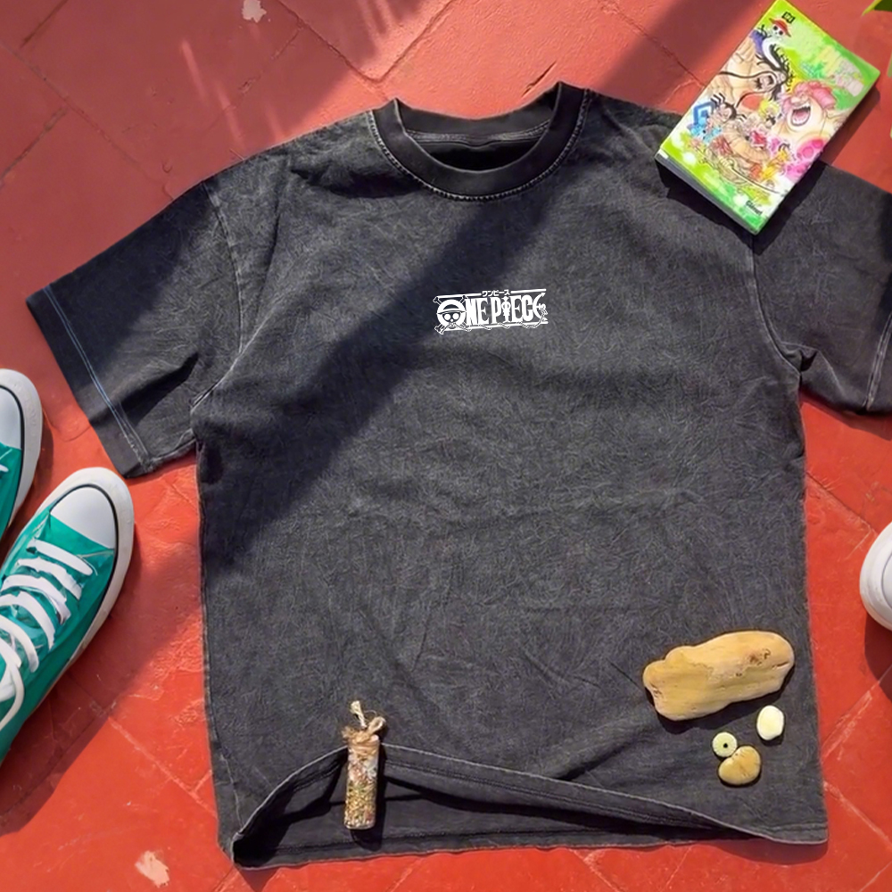 Retro Unisex Casual Anime Print Washed T-shirt