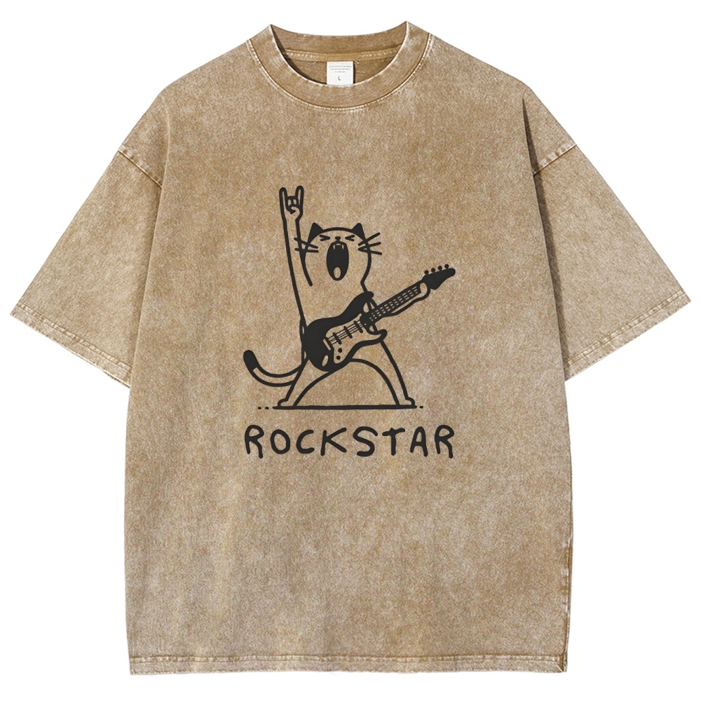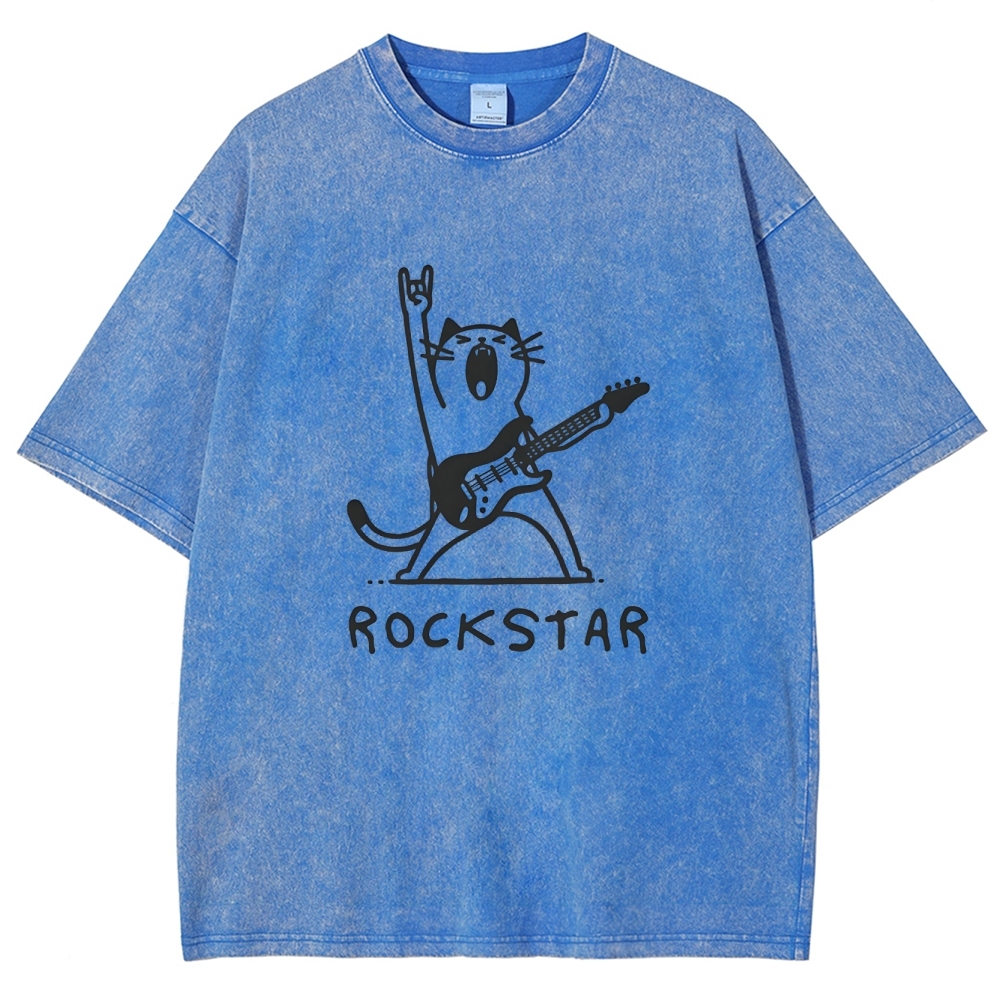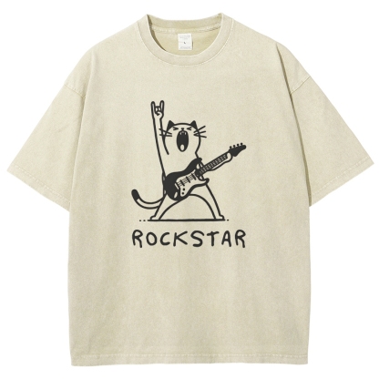 Rock Cat Washed Vintage Short Sleeves T-Shirt