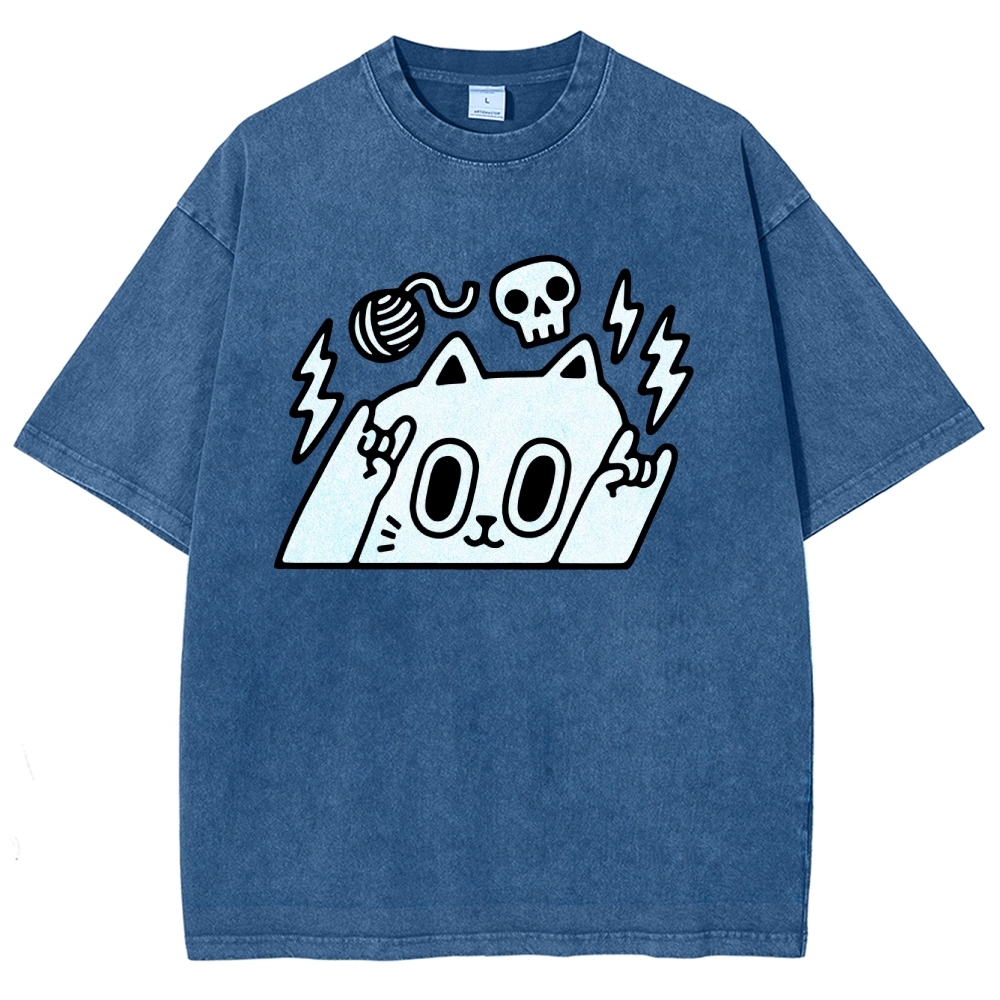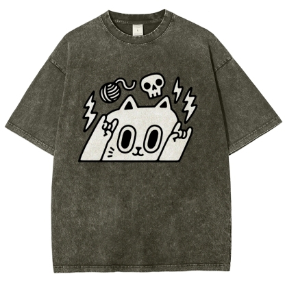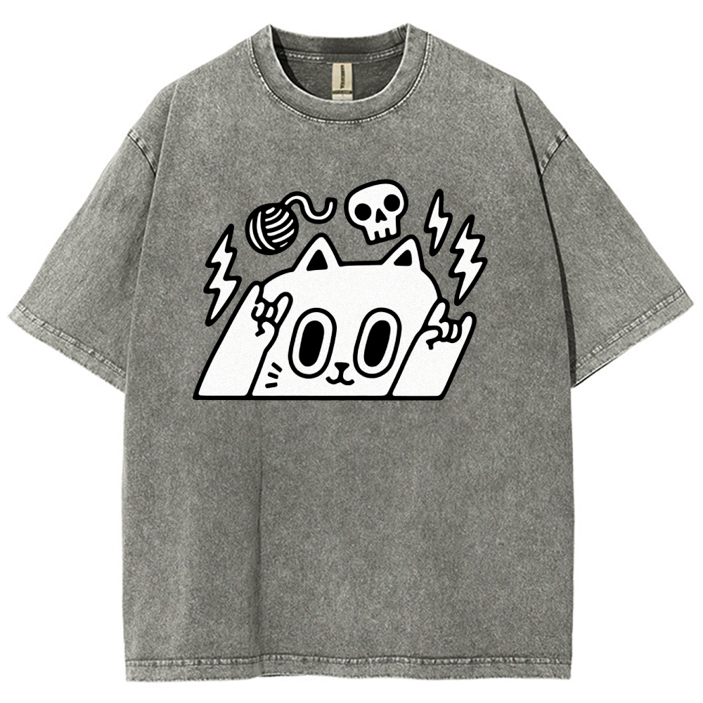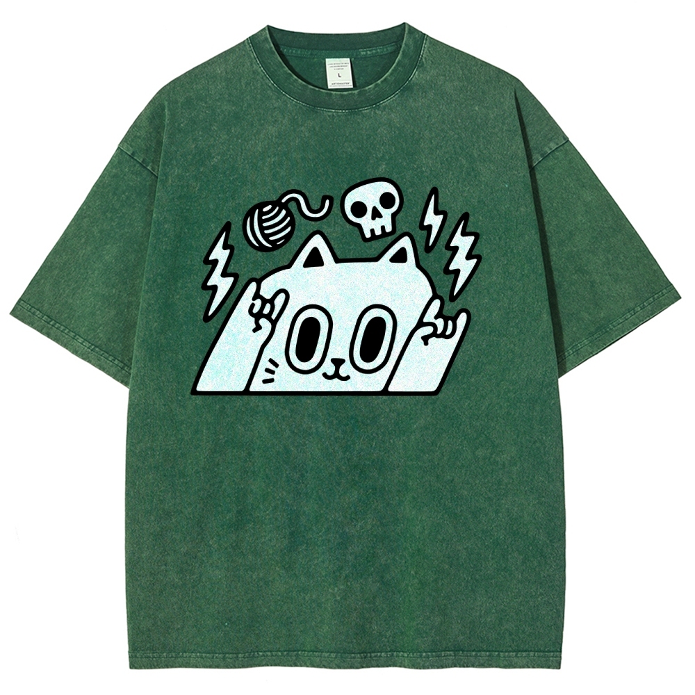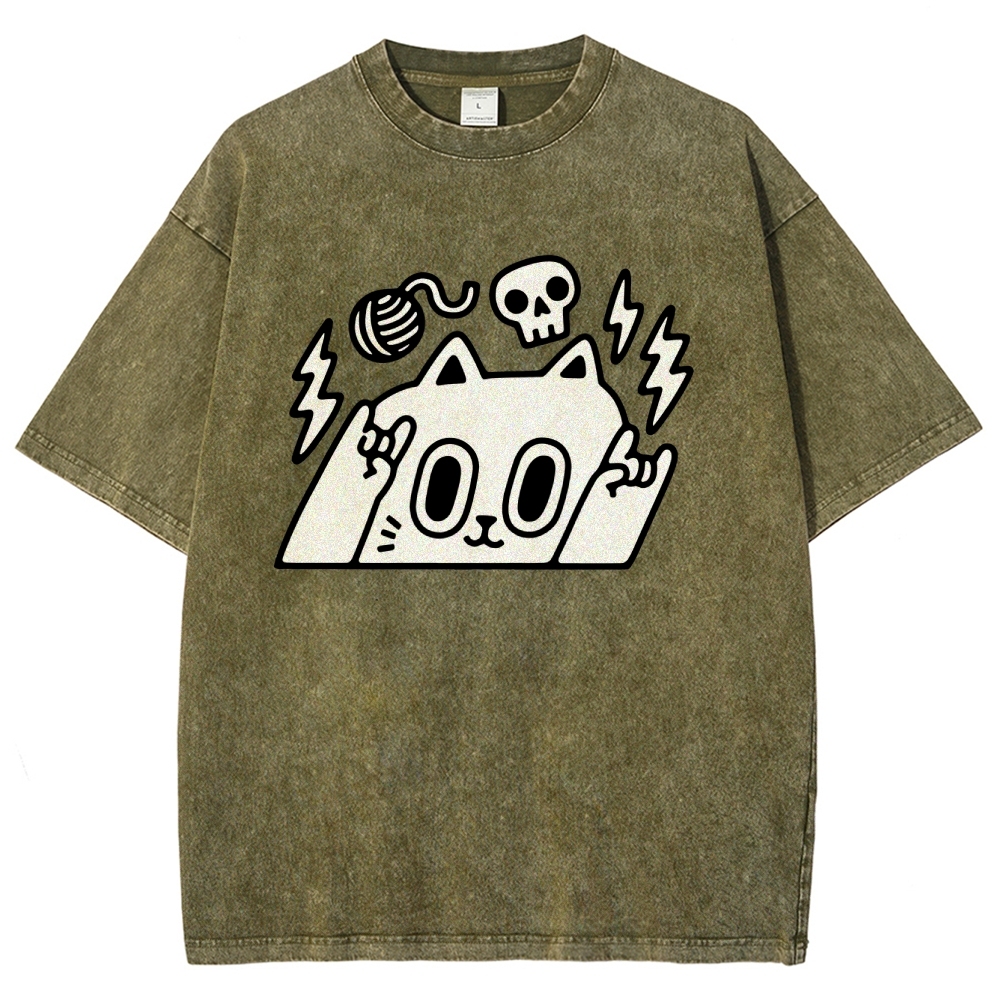 Rock Cat Washed Vintage Short Sleeves T-Shirt