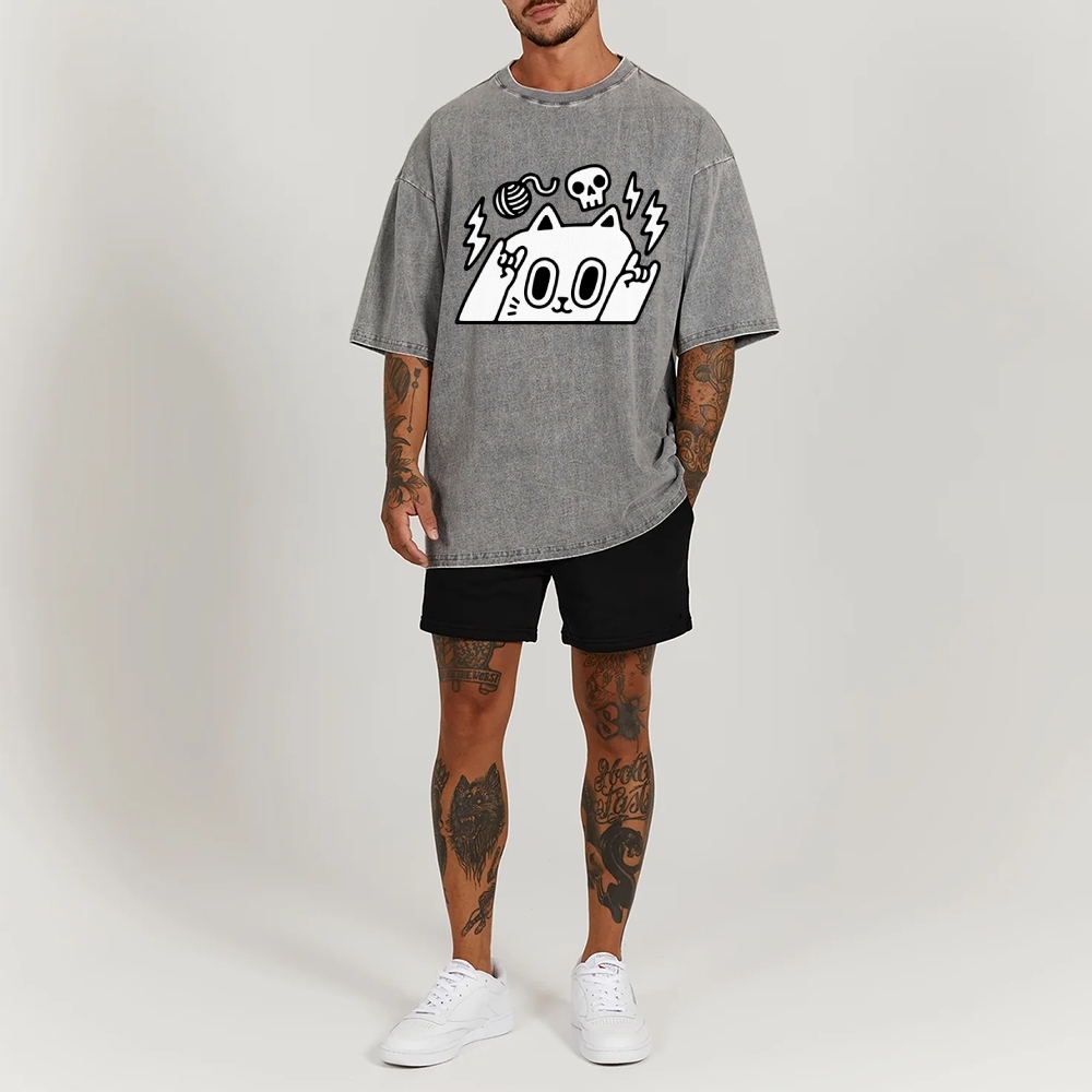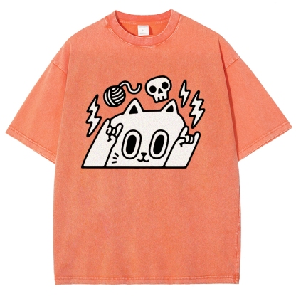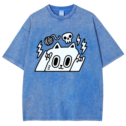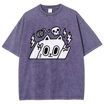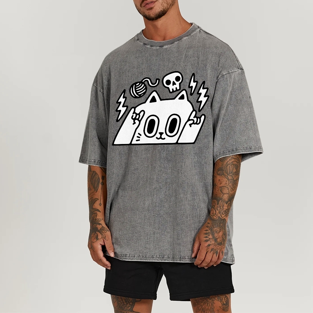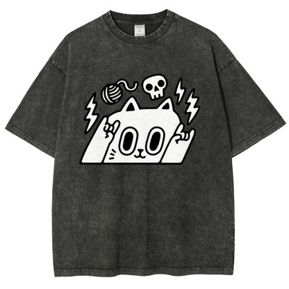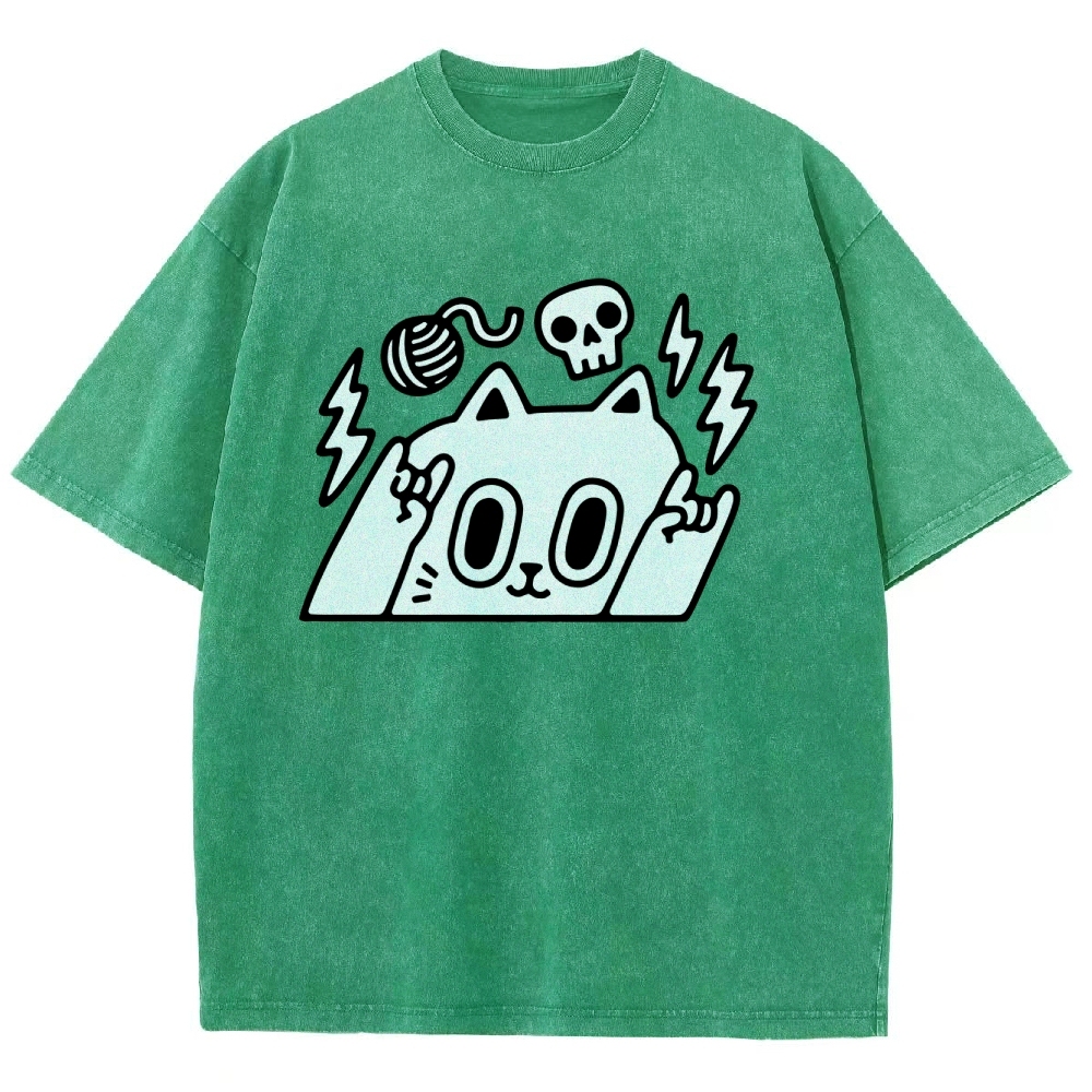 Rock Cat Washed Vintage Short Sleeves T-Shirt