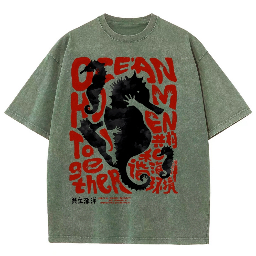 Sea Horse Washed Vintage Short Sleeves T-Shirt