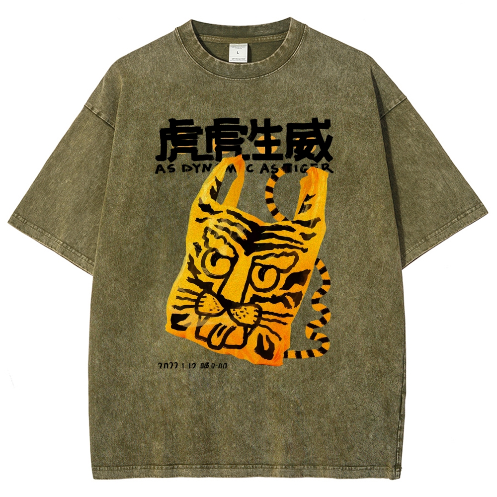 Tiger Bag Washed Vintage Short Sleeves T-Shirt