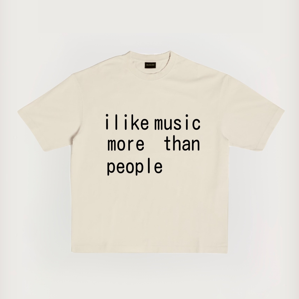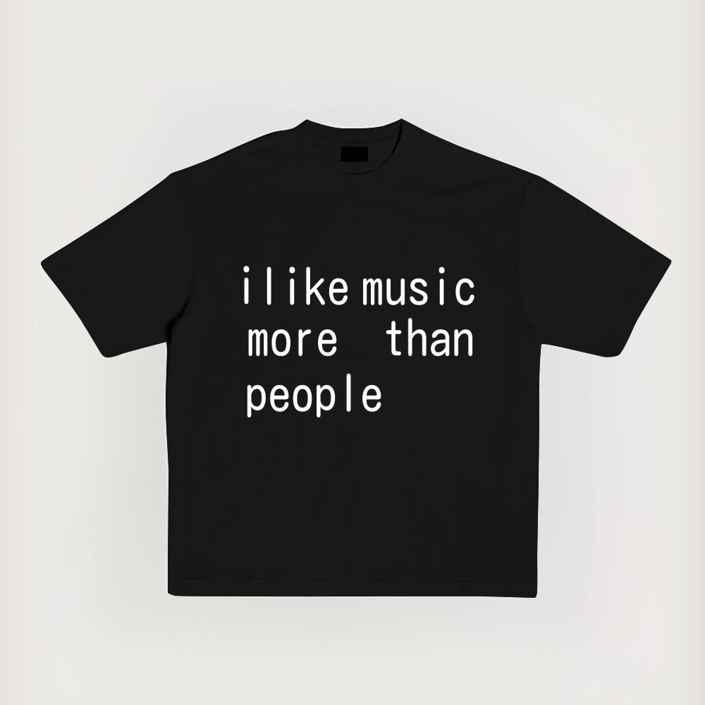 Unisex Fit Solid Color Cotton I Like Musicmore Thanpeople Printed Short-Sleeved T-Shirt