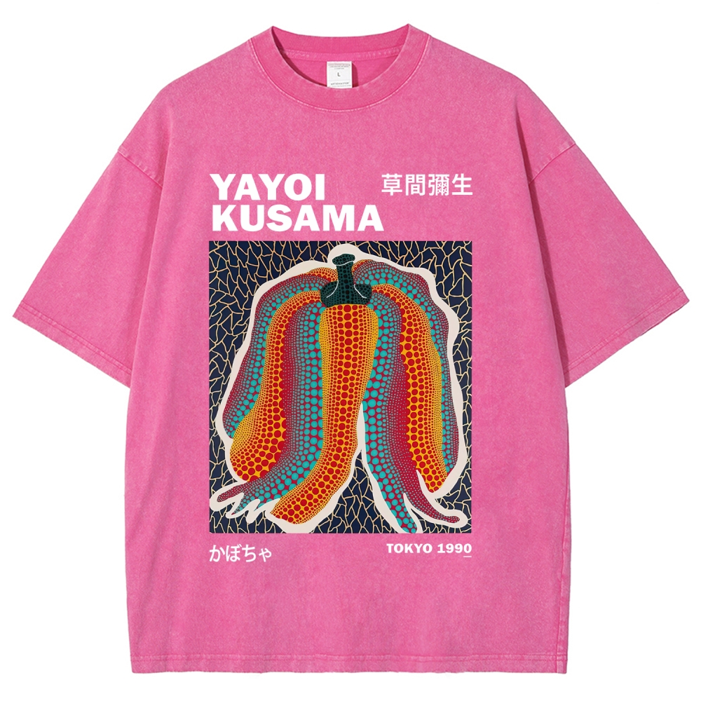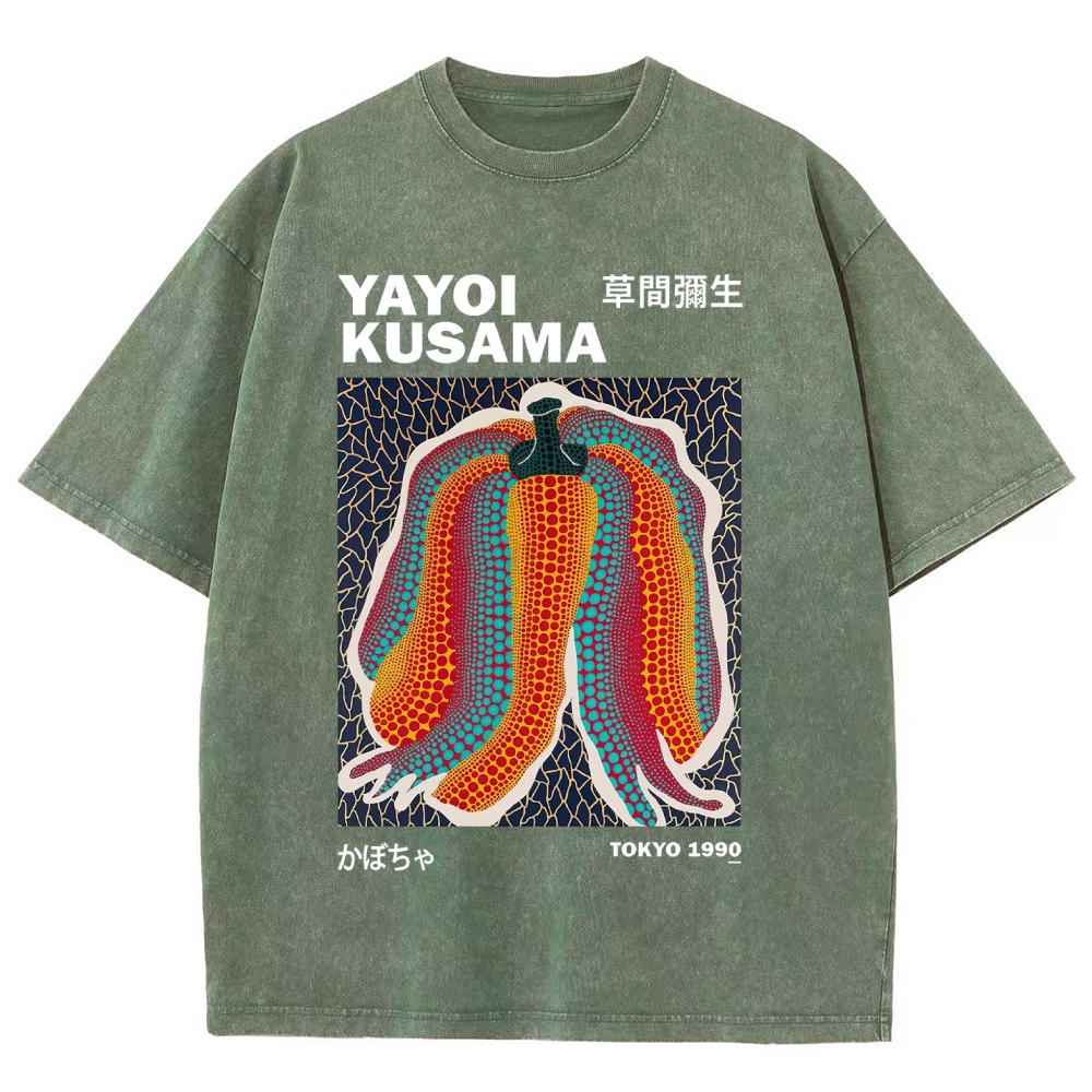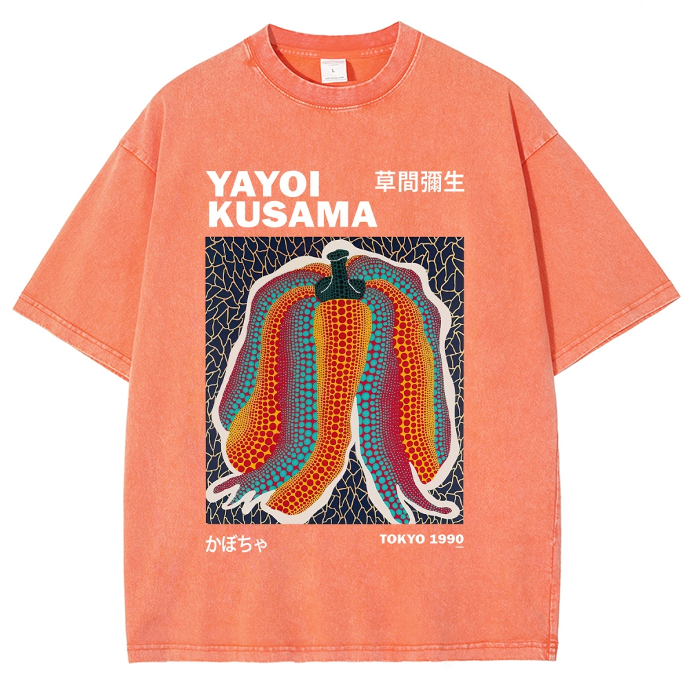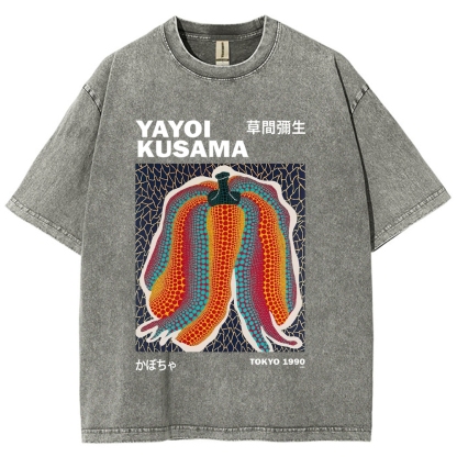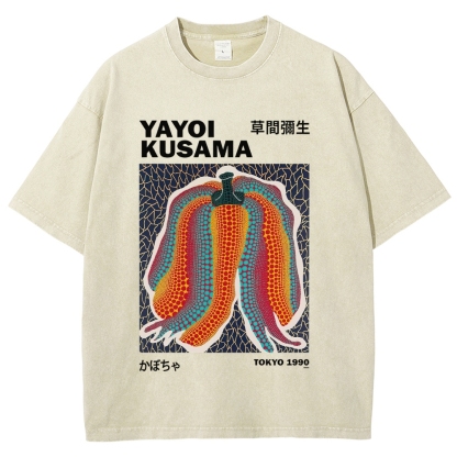 Unisex Fit Yayoi Kusama Pumpkin Washed T-Shirt