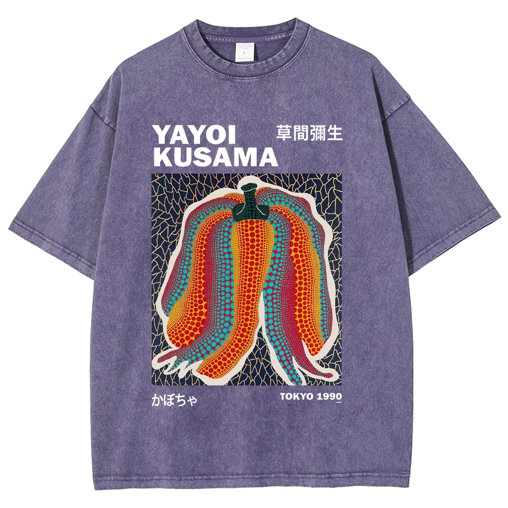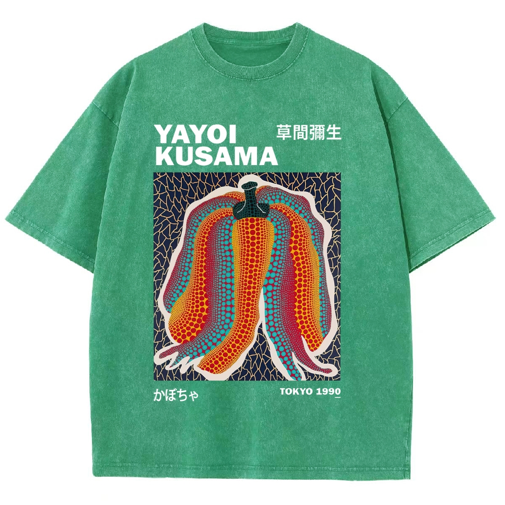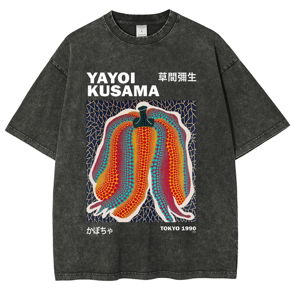 Unisex Fit Yayoi Kusama Pumpkin Washed T-Shirt