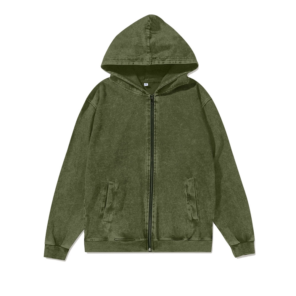 Tailored for autumn’s mild chill, this 300g zip-up hoodie strikes the perfect balance between warmth and lightness. It avoids bulkiness from excess thickness while fending off cool morning/evening air, keeping you comfy for commutes, weekend outings, or casual days.Its standout feature is the washed fabric—gentle washing makes it ultra-soft (no stiff feel of regular hoodies) with a vintage, well-loved texture. It also reduces shrinkage, staying in shape after washes.
