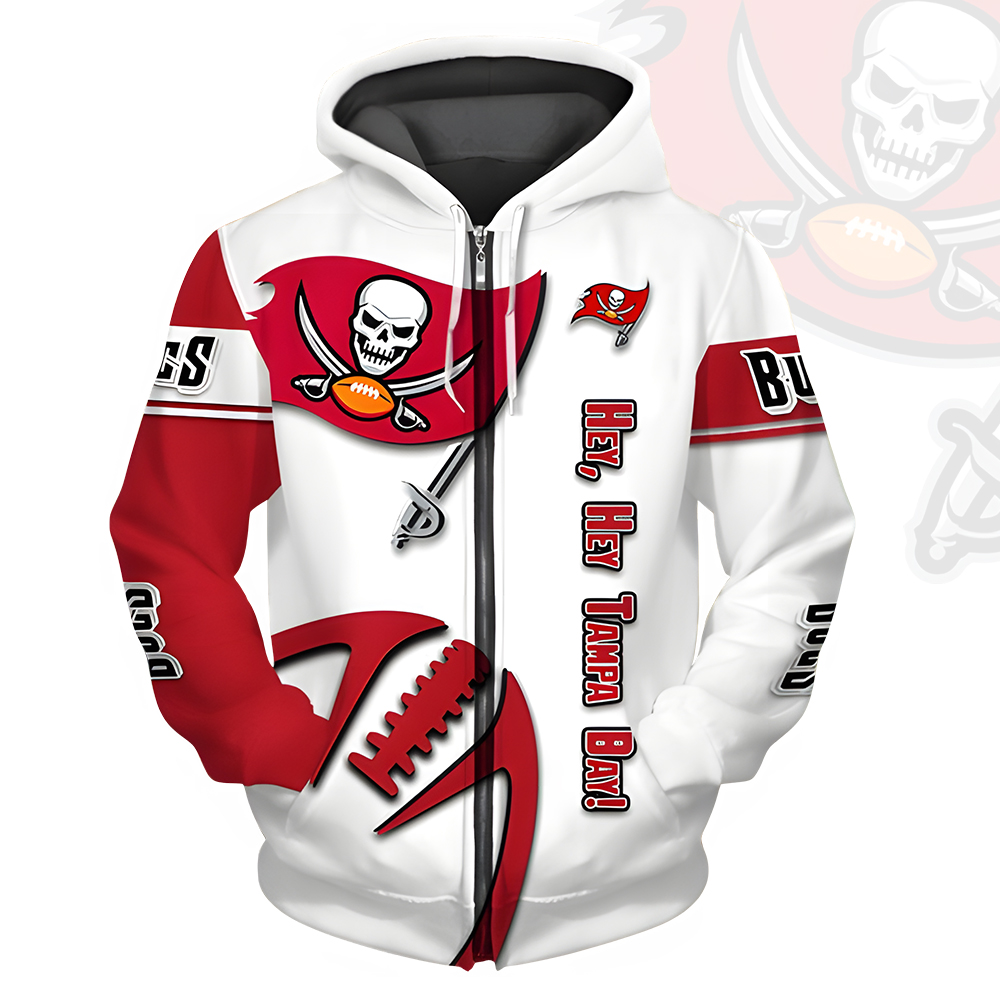Unisex Tampa Bay Buccaneers Printed Hoodie – Bold Zip Up Sweatshirt for Fans