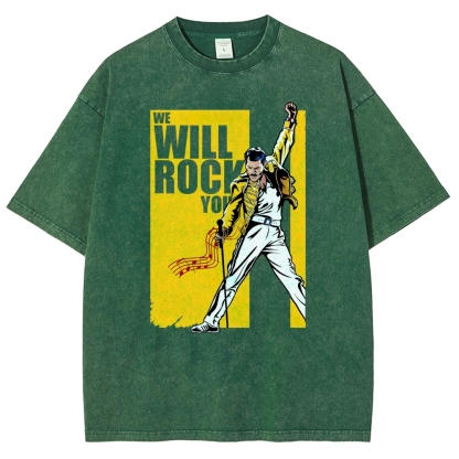 We Will Rock You Yellow Unisex Fit Washed T-Shirt
